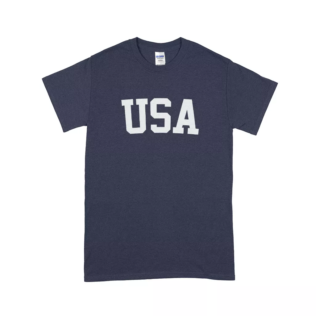 taped neck and shoulders, double-needle sleeve and bottom hems, and