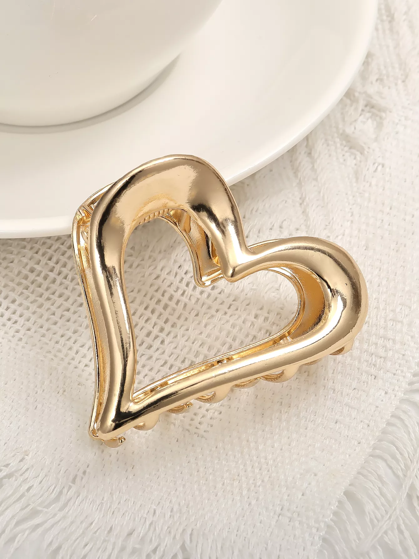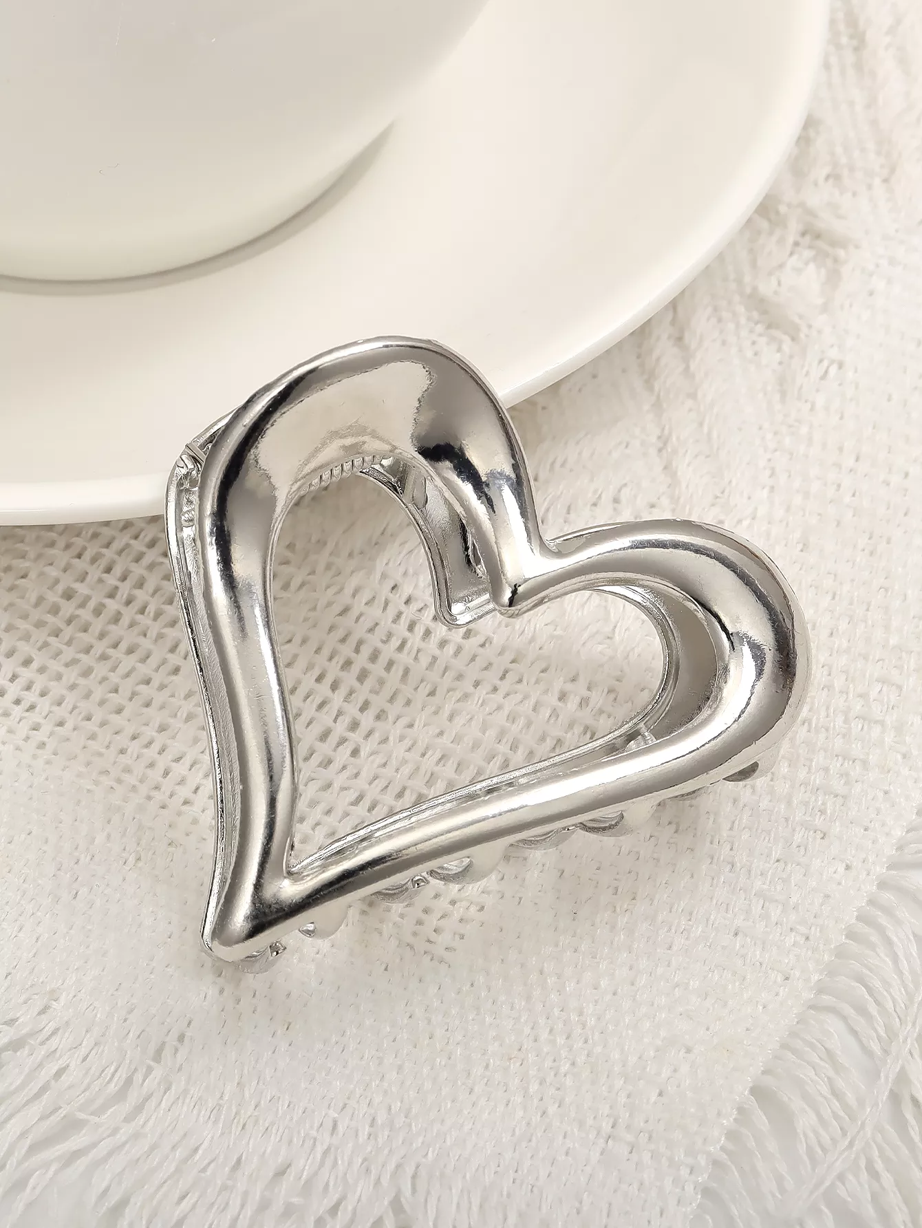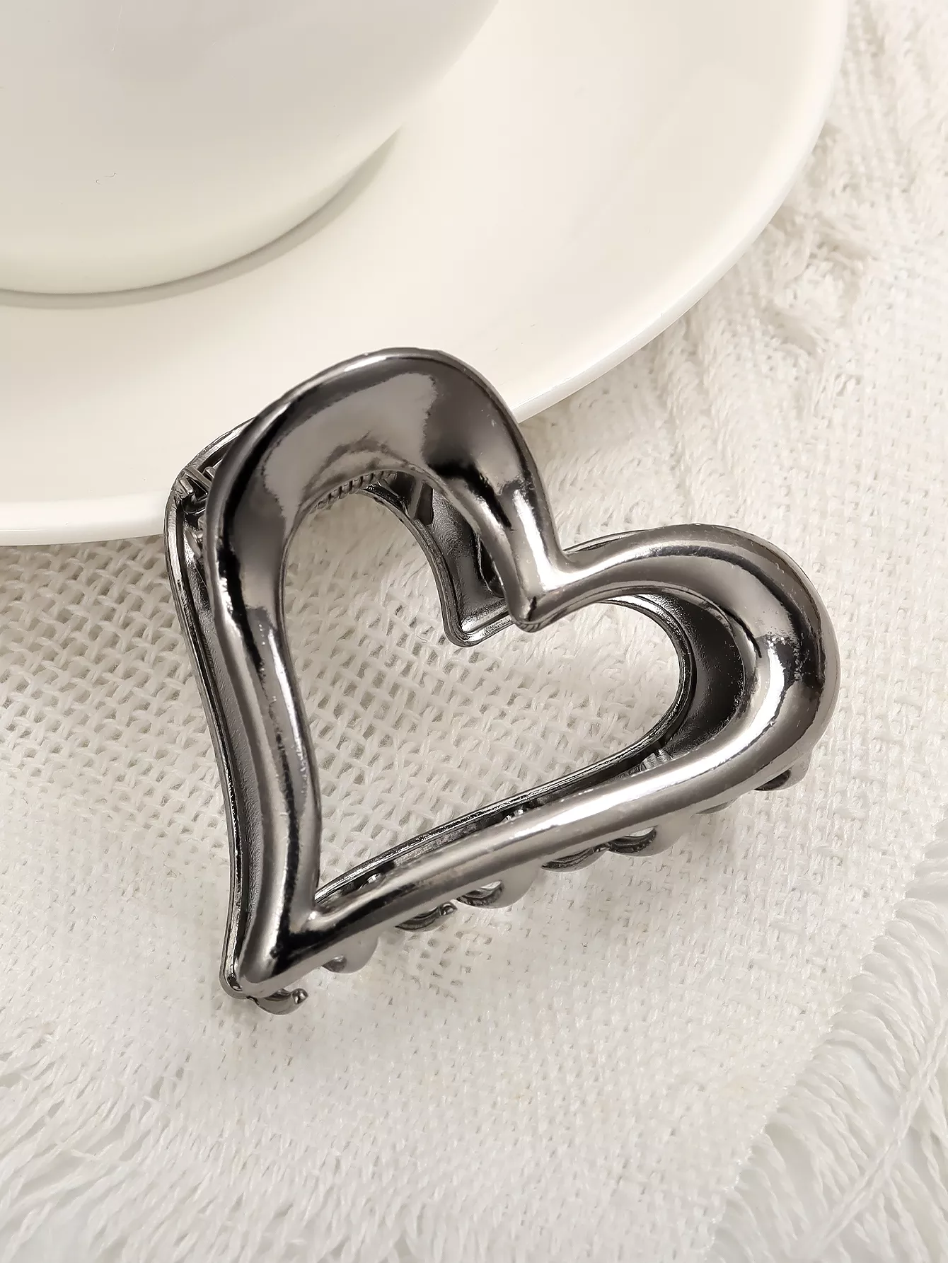 Featuring a shark clip design on the back, it ensures a firm grip that holds your hair securely in place throughout the day. The hollow heart shape gives it an eye-catching, modern feel, while the simple metallic finish pairs effortlessly with any outfit. This hairpin clip is not only a practical accessory but also a fashionable statement piece, making it an excellent addition to your everyday look.