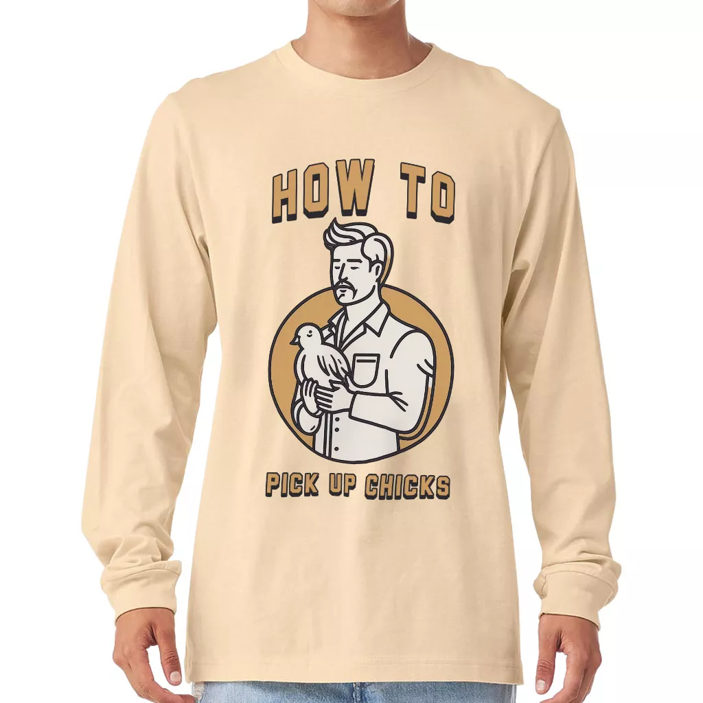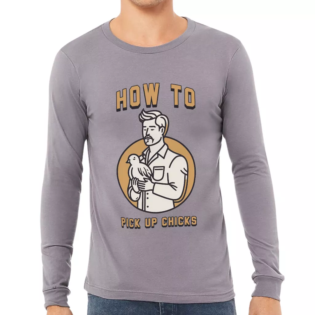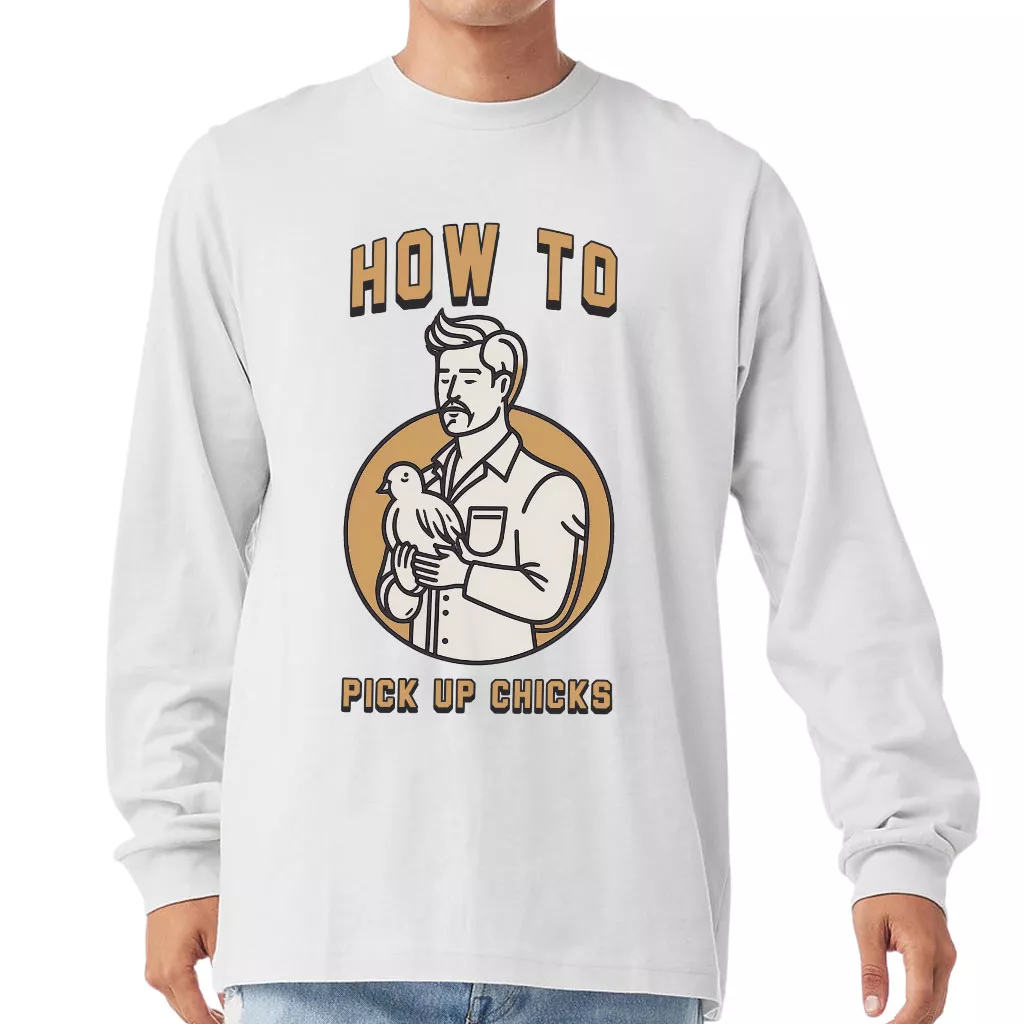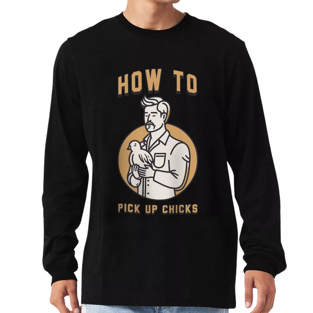 How to Pick Up Chicks Long Sleeve T-Shirt – Funny T-Shirt – Graphic Long Sleeve Tee