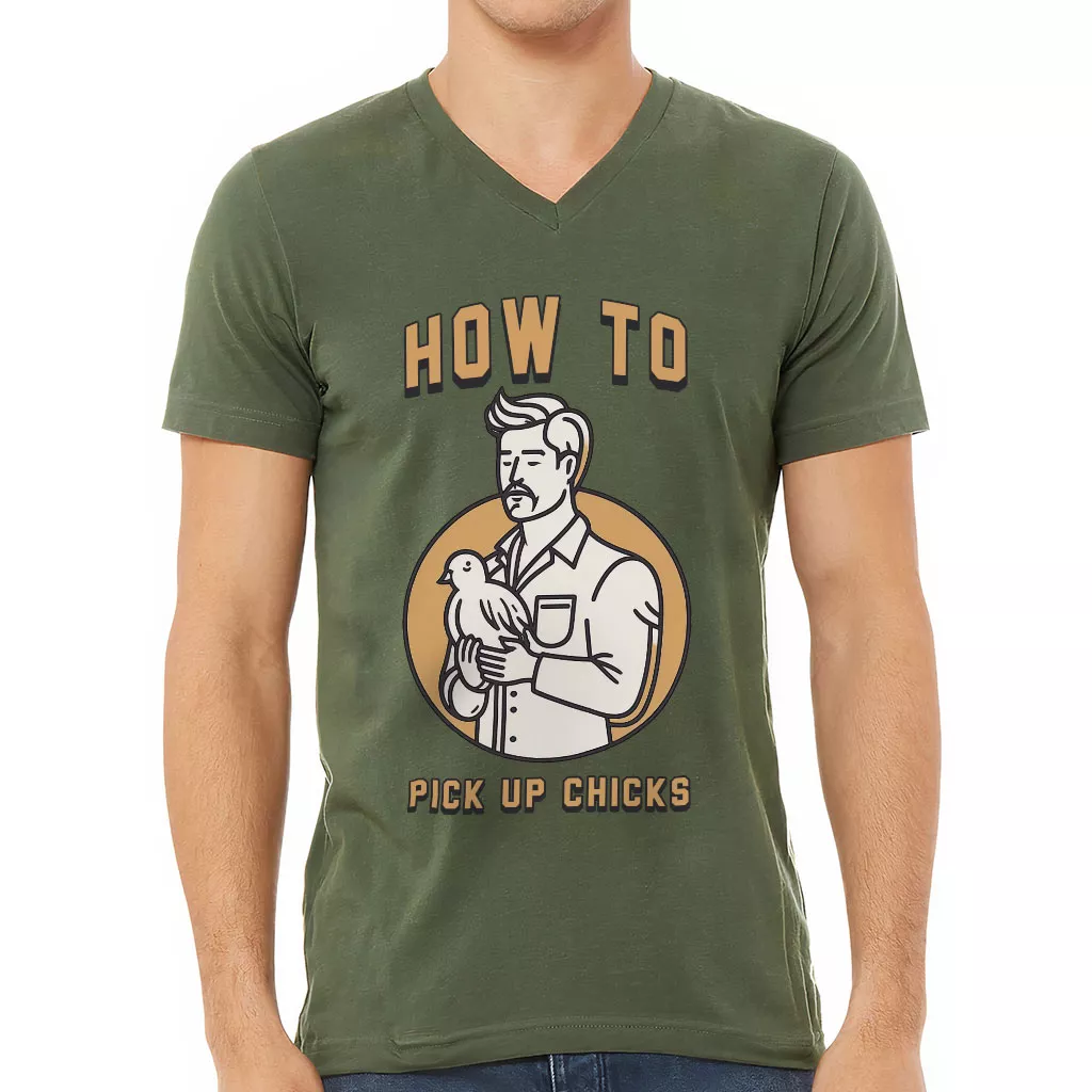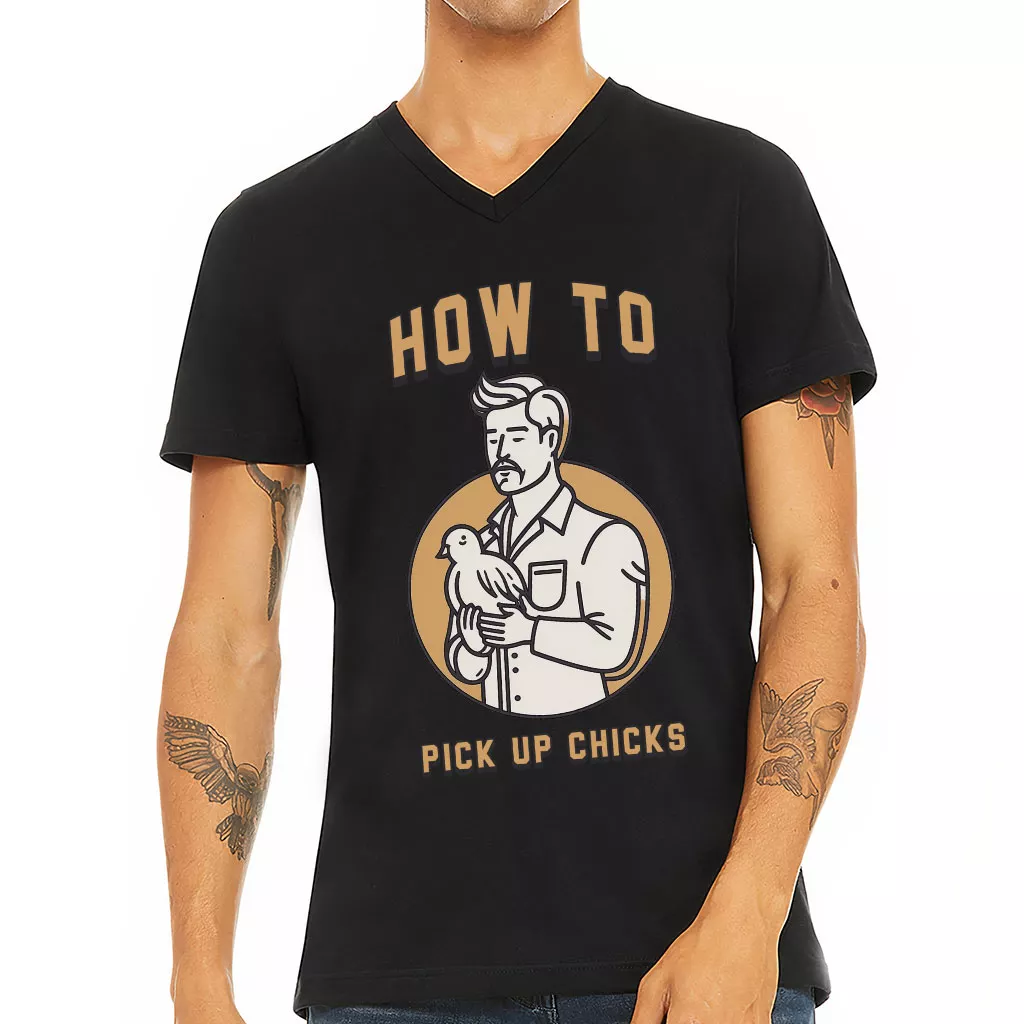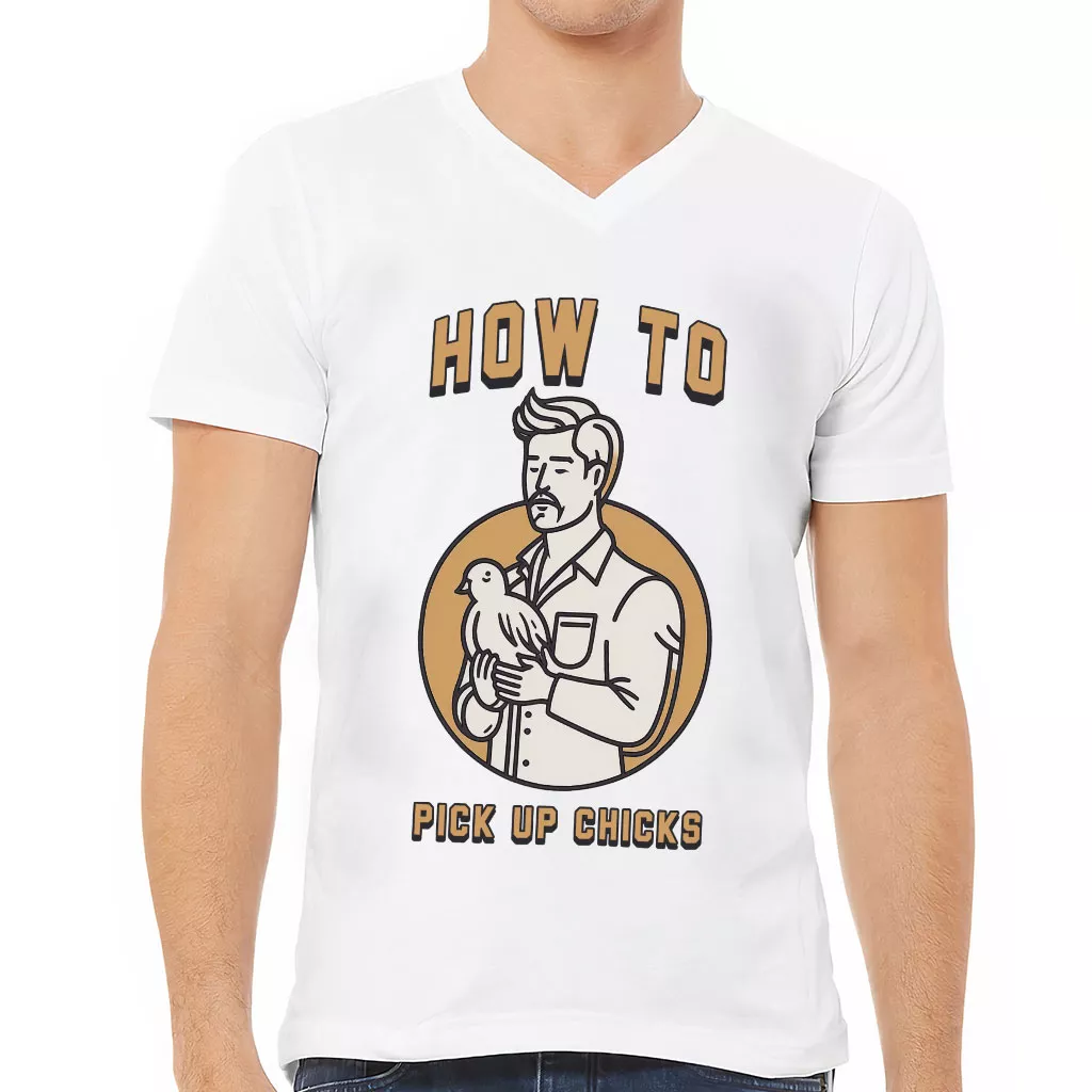 How to Pick Up Chicks V-Neck T-Shirt – Funny T-Shirt – Graphic V-Neck Tee