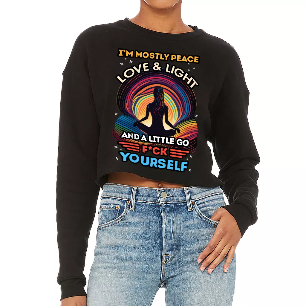 I’m Mostly Peace Love and Light Cropped Sweatshirt – Yoga Themed Women’s Sweatshirt – Funny Crop Crew Sweatshirt