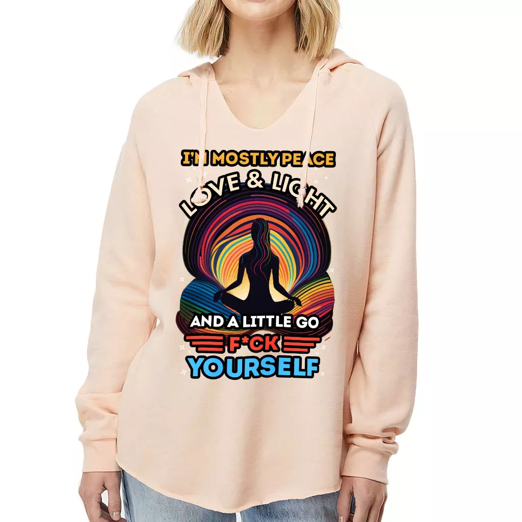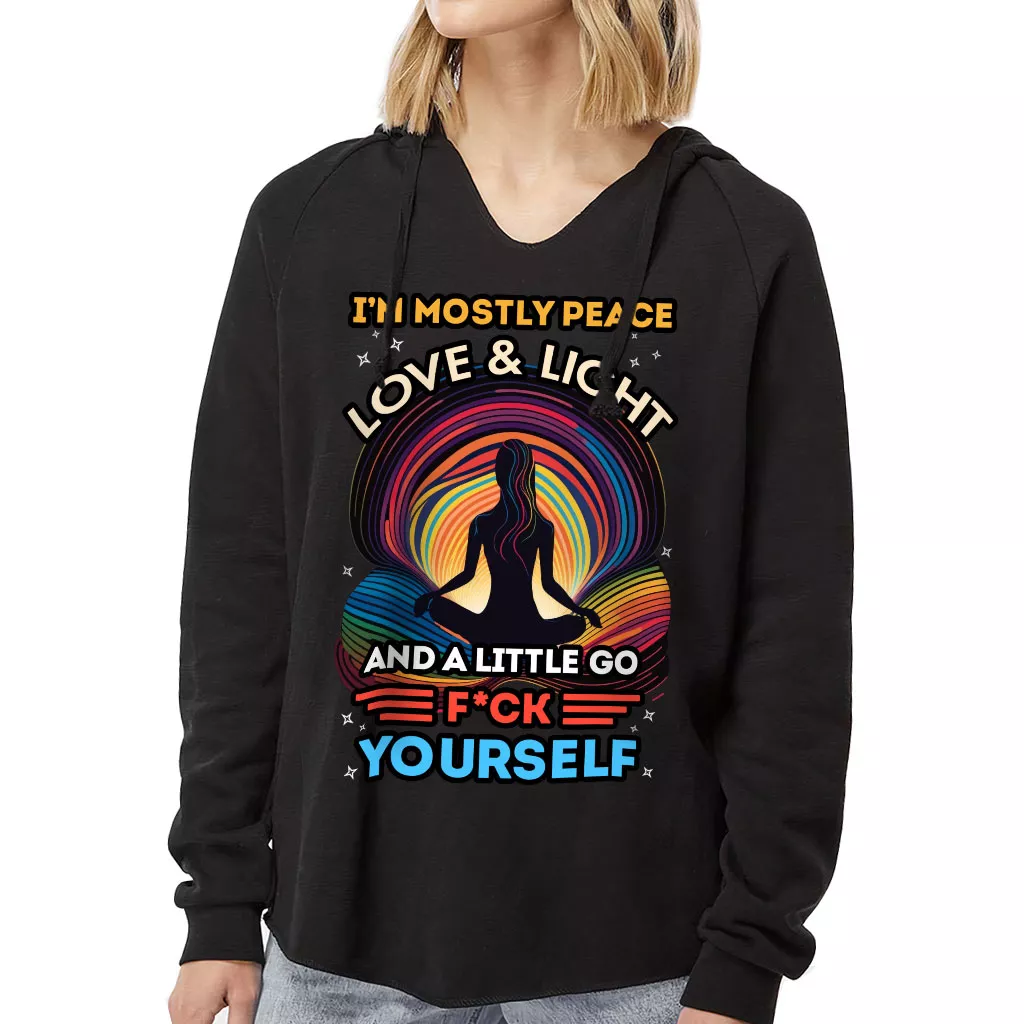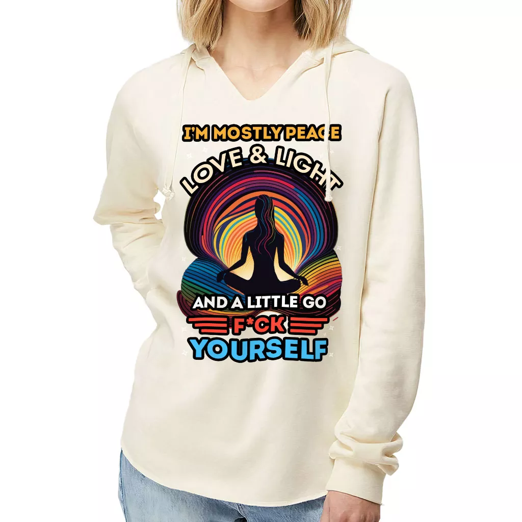 I’m Mostly Peace Love and Light Wave Wash Hoodie – Yoga Themed Hooded Sweatshirt – Funny Hoodie