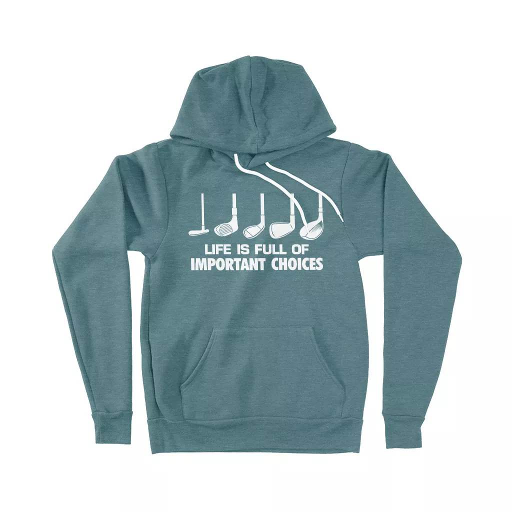 Important Choices Golf Unisex Sponge Fleece Hoodie is a nice gift for Halloween, Christmas, New Year, and birthday, buy it for yourself or gift it to a friend or family member.
