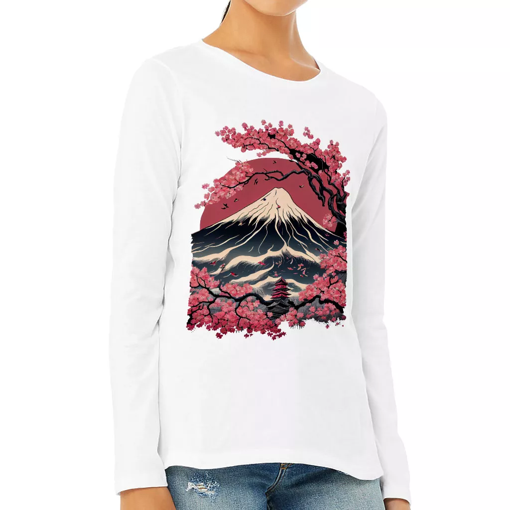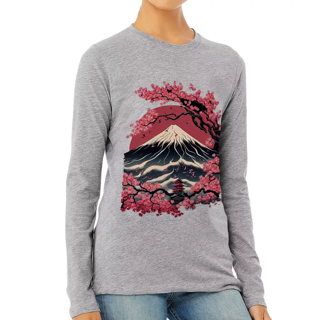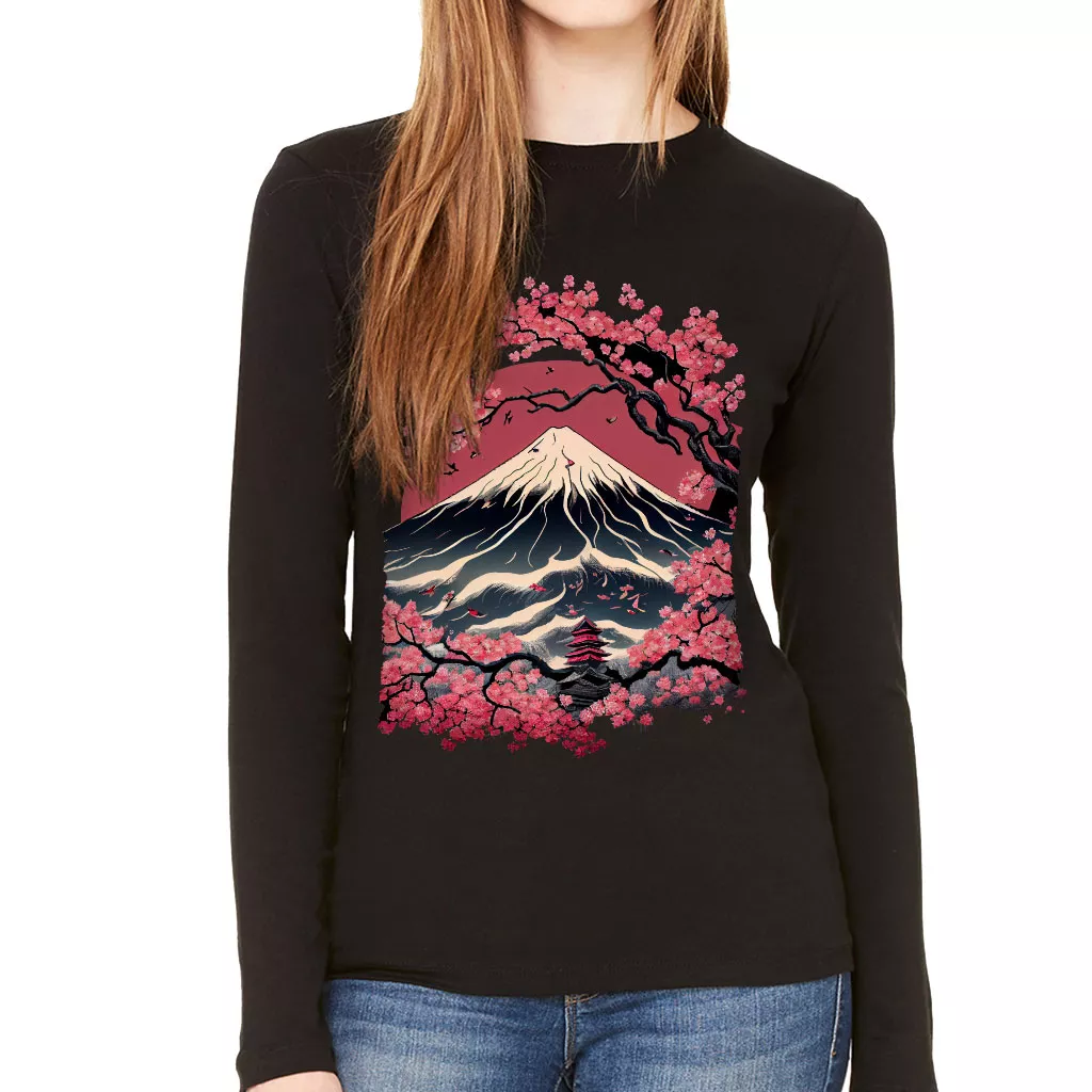 Japan Art Women’s Long Sleeve T-Shirt – Blossom Long Sleeve Tee – Landscape T-Shirt