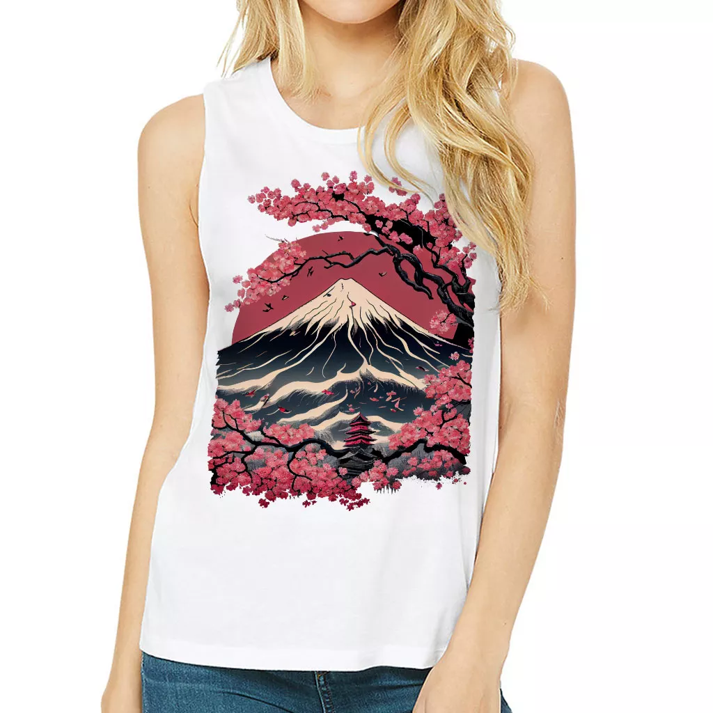 Japan Art Women’s Muscle Tank – Blossom Tank Top – Landscape Workout Tank