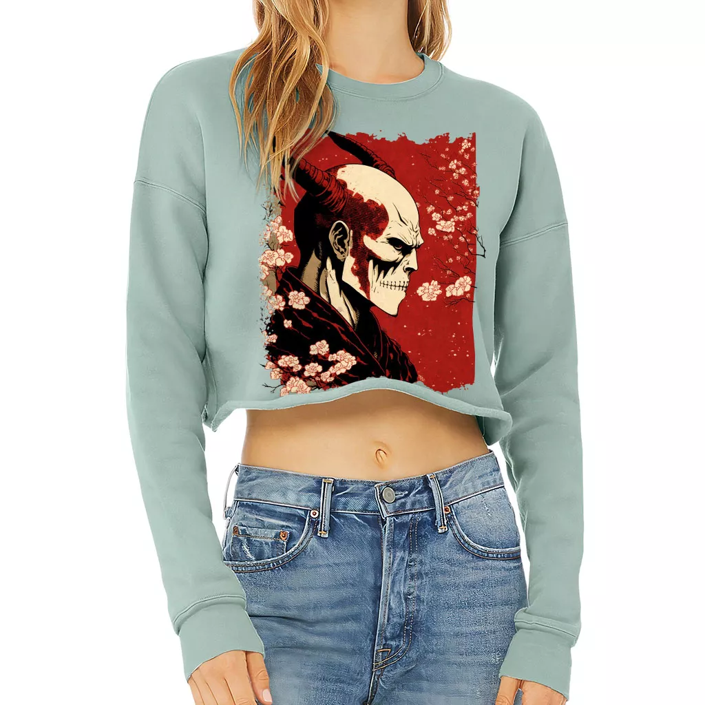 Japanese Design Cropped Sweatshirt – Artwork Women’s Sweatshirt – Blossom Crop Crew Sweatshirt