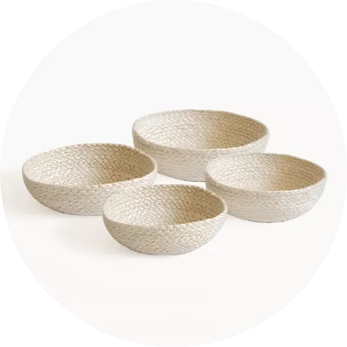 The bowls are made with 100% natural raw jute and natural dye. This charming homeware boasts the refined skills of our fair trade artisans, which have been acquired through many generations.