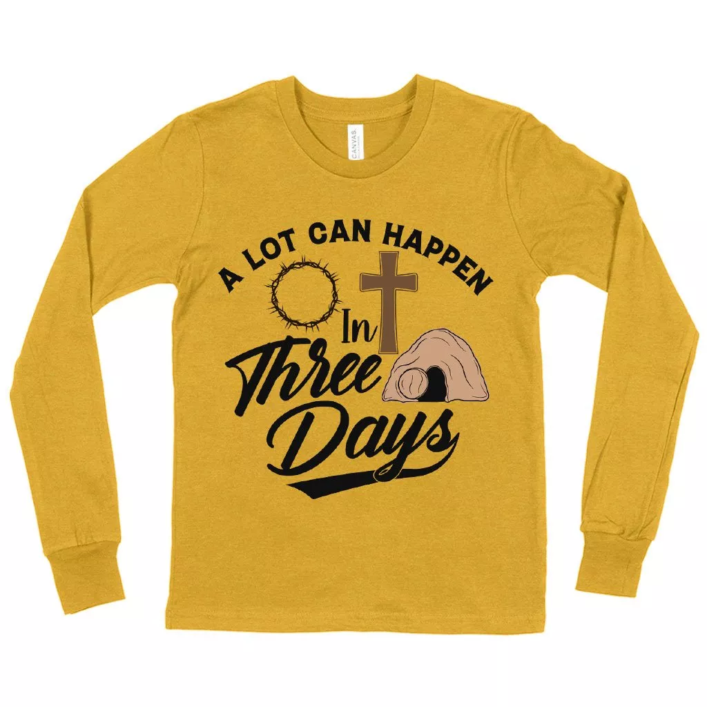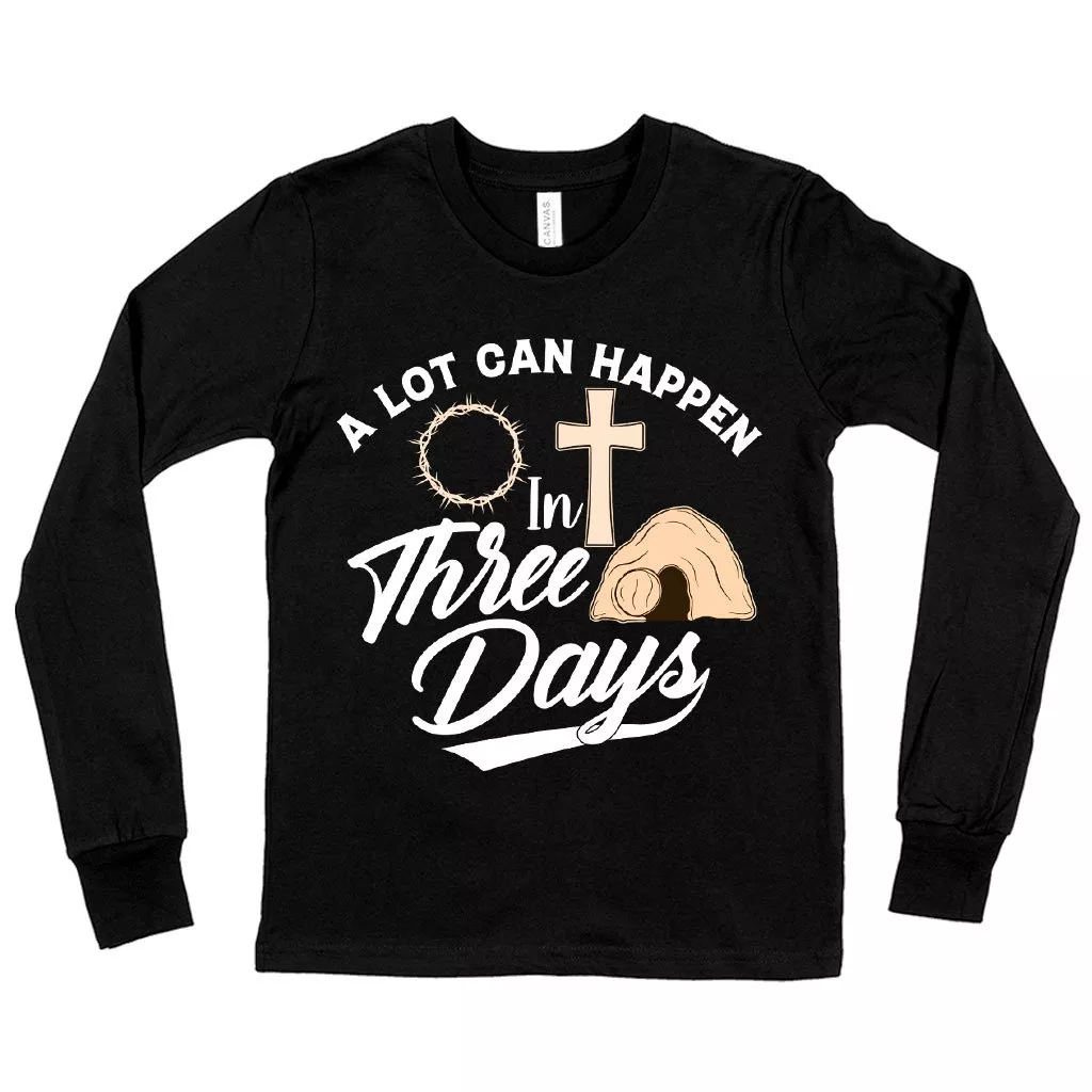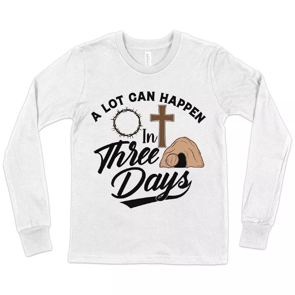 Kids’ A Lot Can Happen in 3 Days Long Sleeve T-Shirt – Christian T-Shirts – Religious Tee Shirts