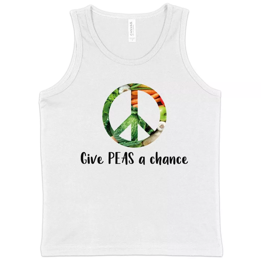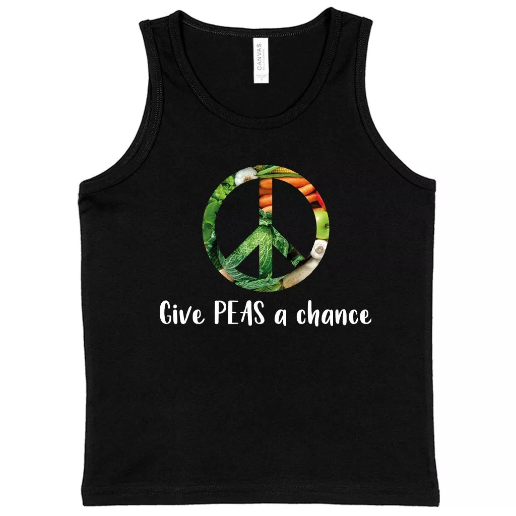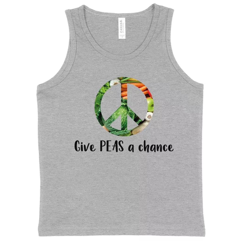 Kids’ Give Peas a Chance Funny Vegan Tank – Vegan Print Tank – Vegetarian Funny Tanks