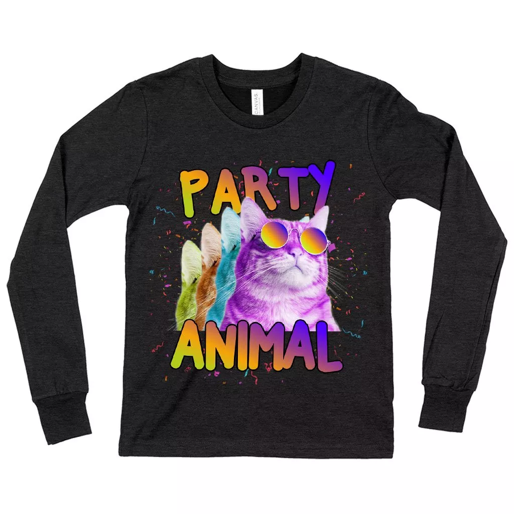 Kids’ Party Animal Cat Long Sleeve T-Shirt – Party Animal Teens’ T-Shirt