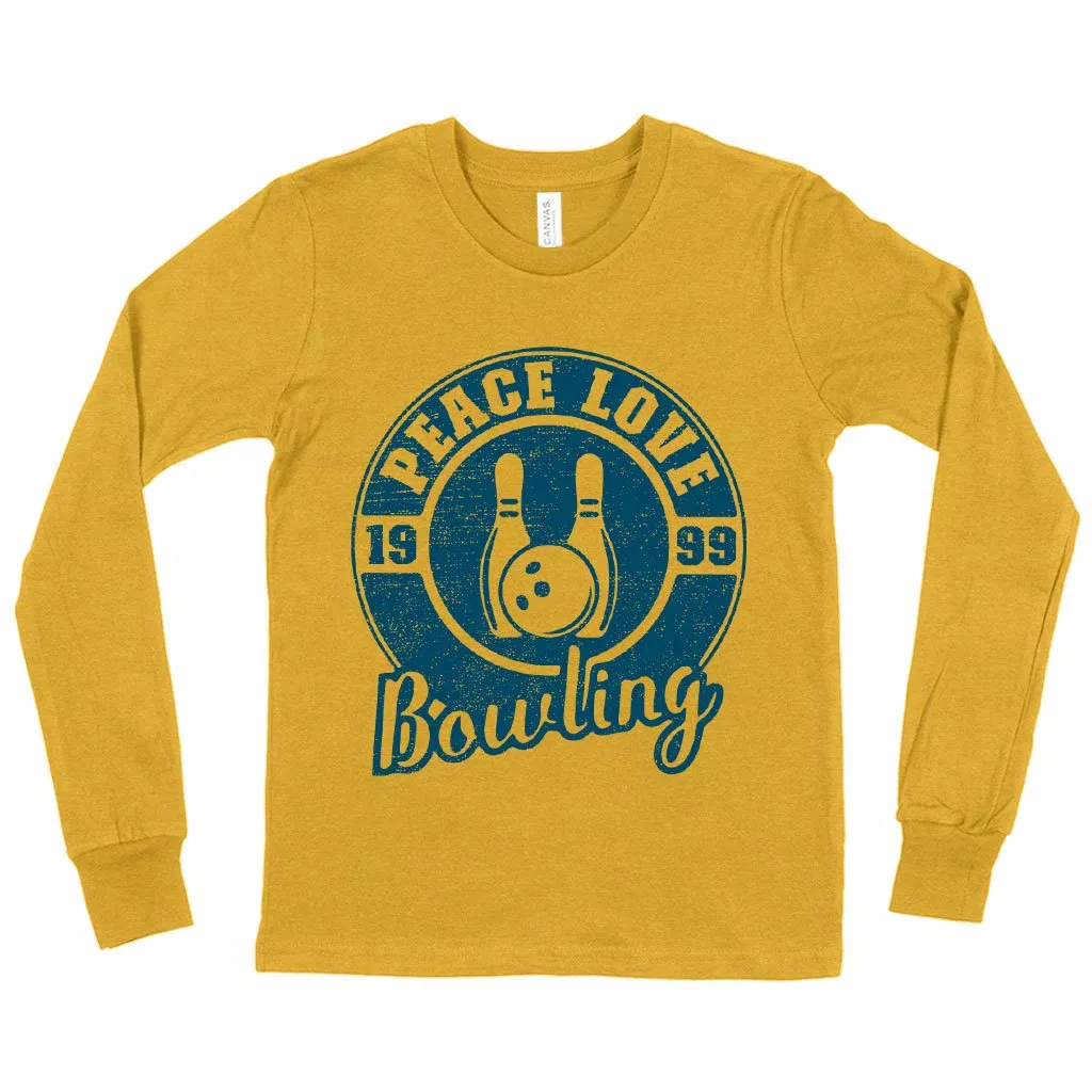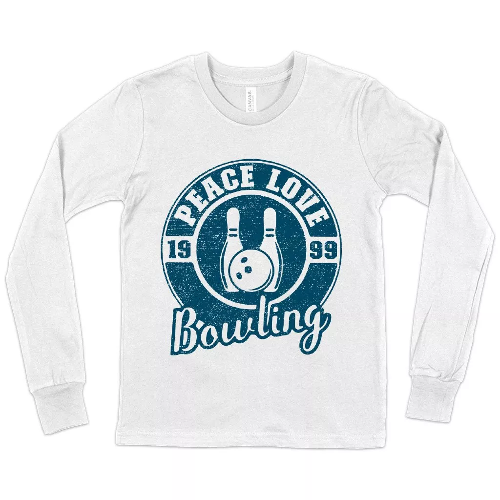 Kids’ Peace Love Bowling Long Sleeve T-Shirt – Bowling T-Shirt Design – Bowling Themed T-Shirts