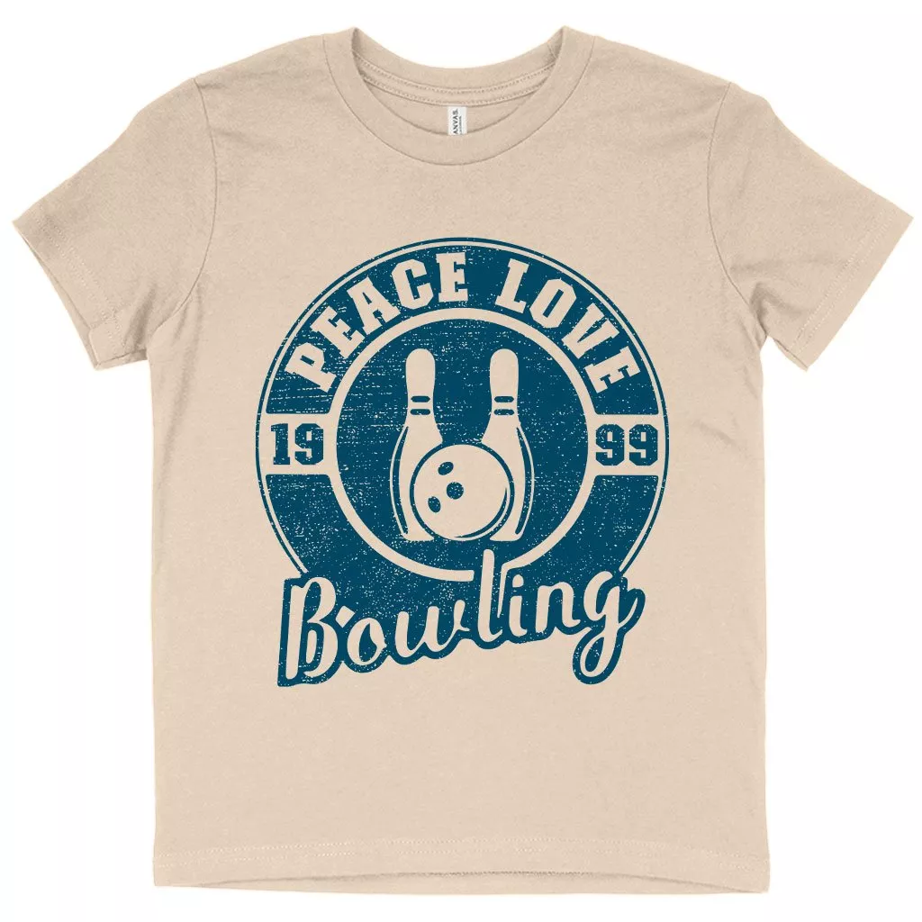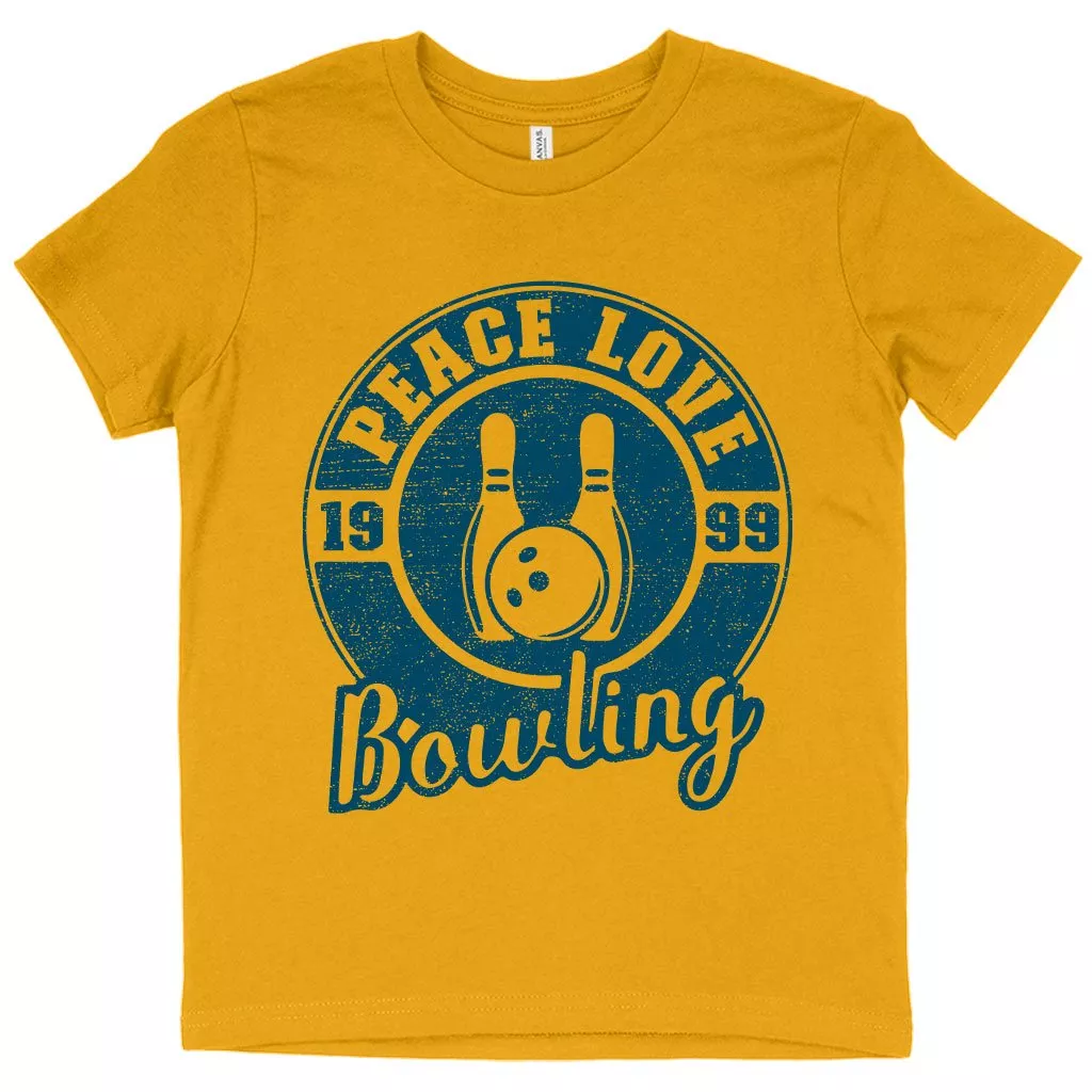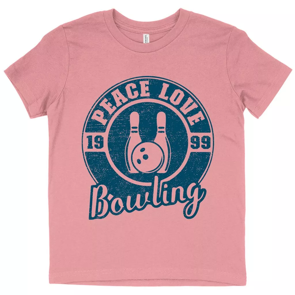 Kids’ Peace Love Bowling T-Shirt – Bowling T-Shirt Design – Bowling Themed T-Shirts