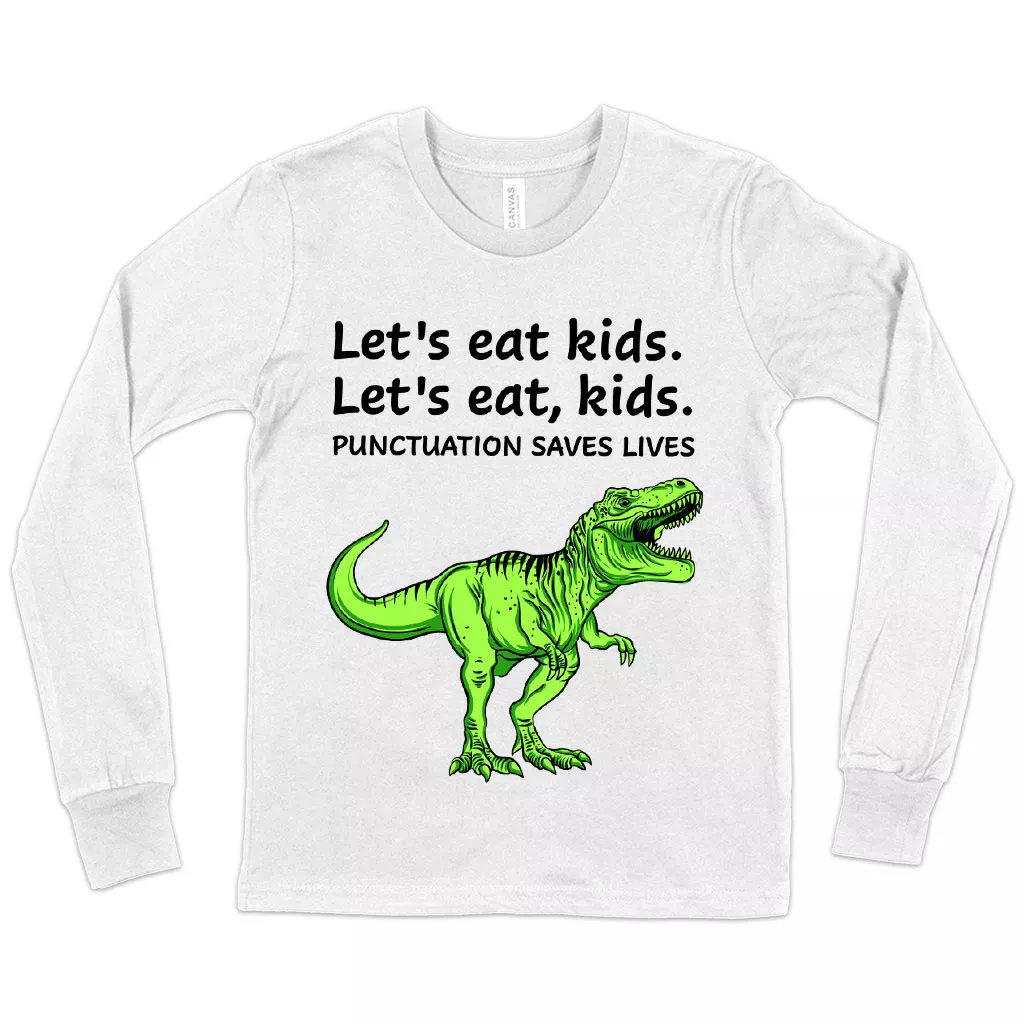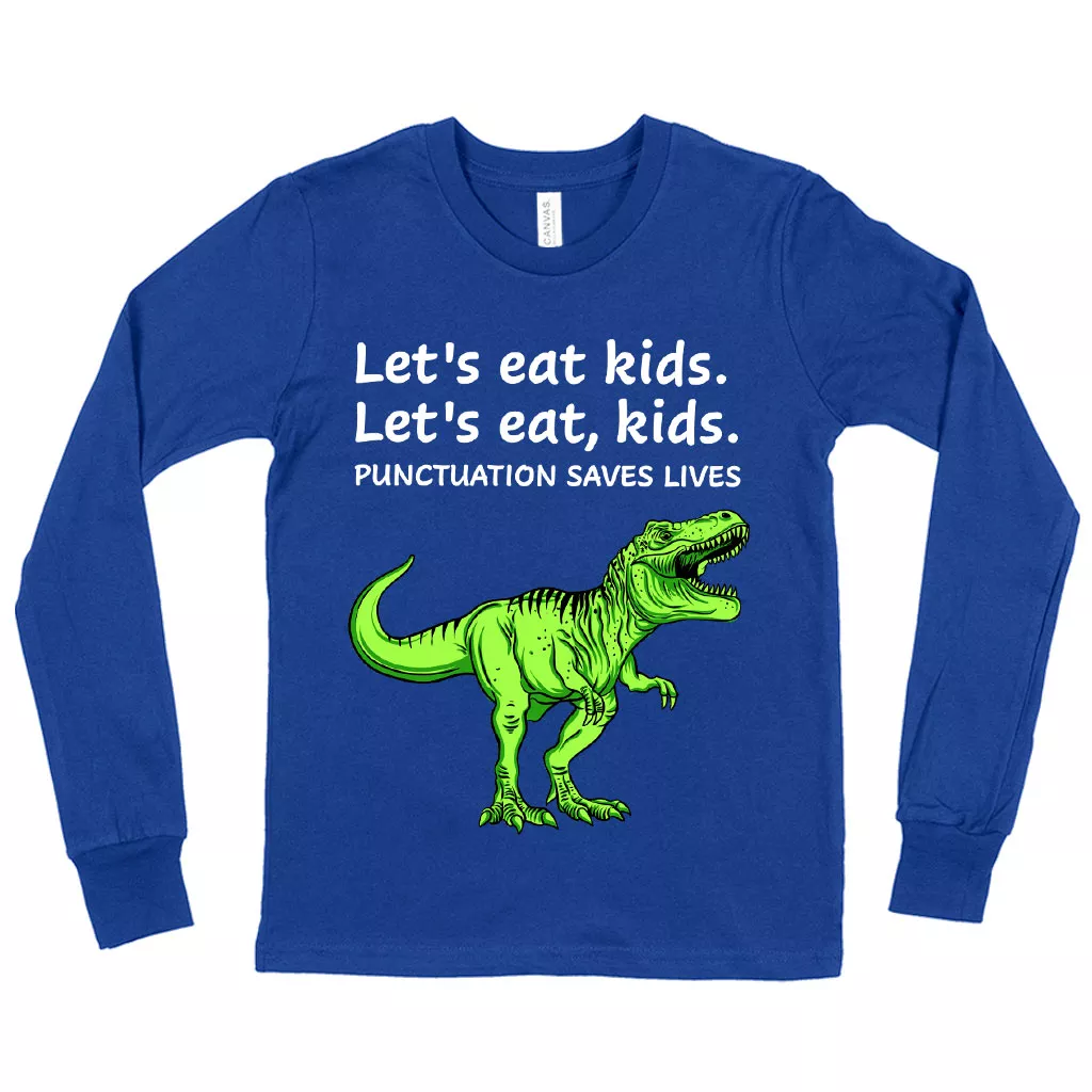 Kids’ Punctuation Saves Lives Long Sleeve Dinosaur T-Shirt – Funny Dinosaur T-Shirt Graphic Print