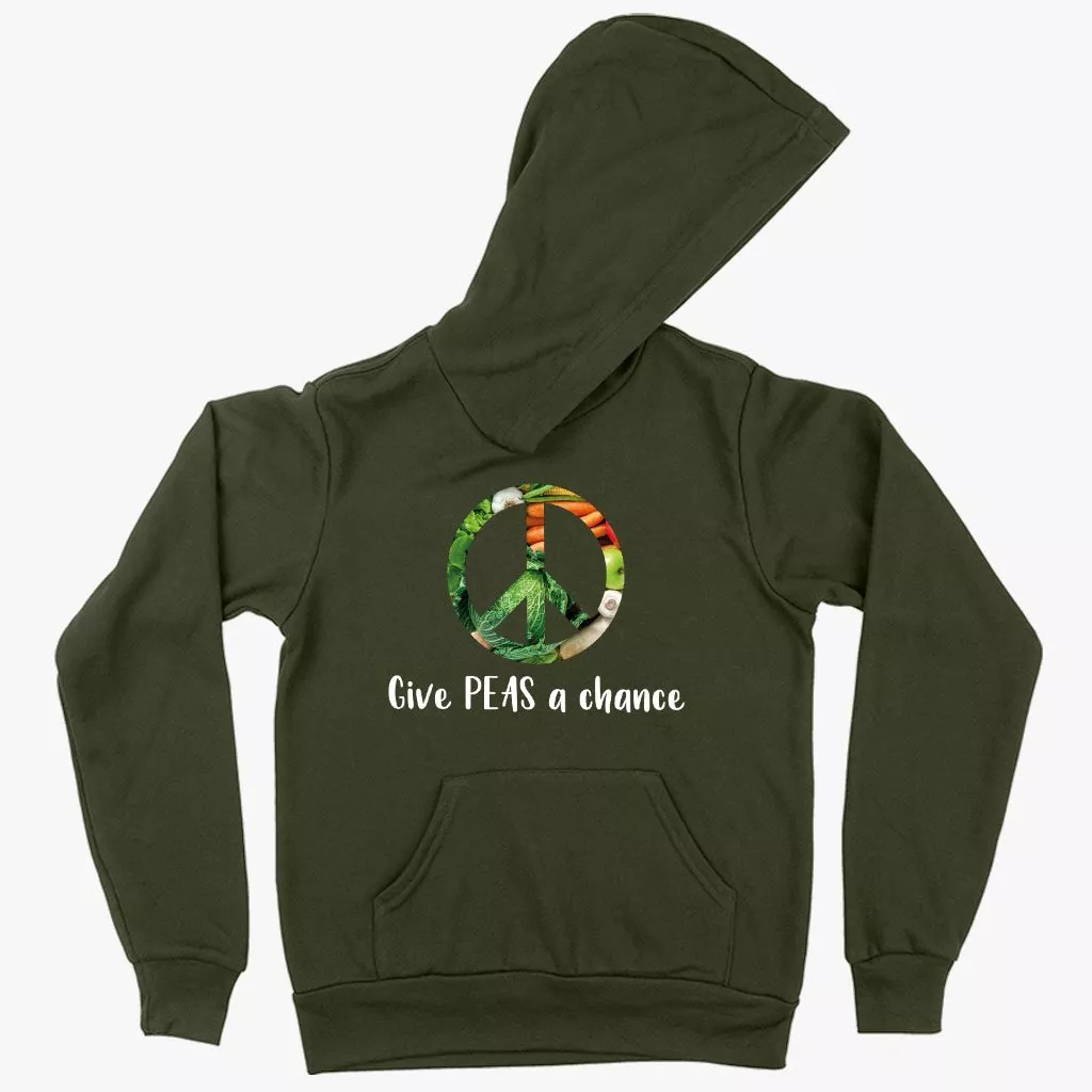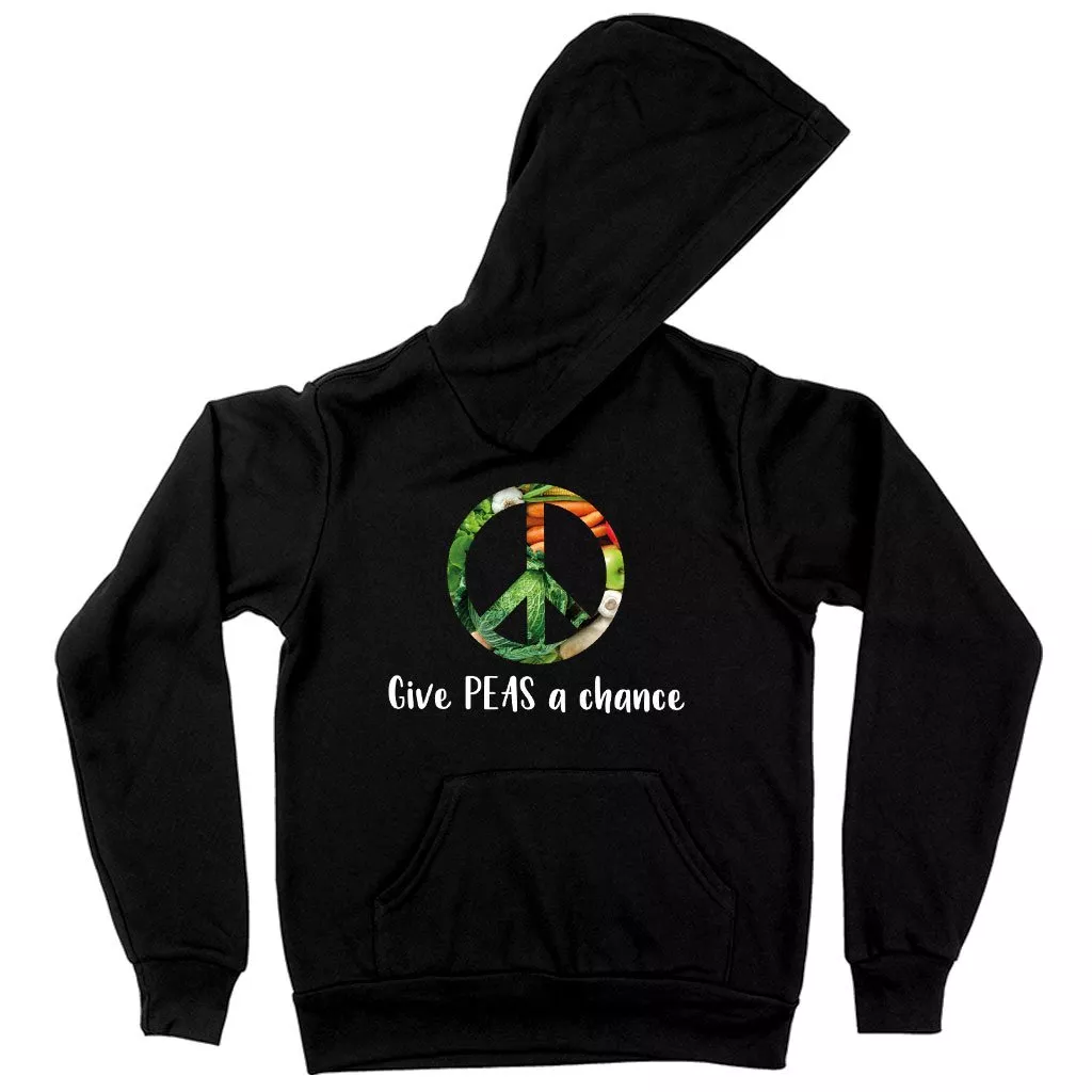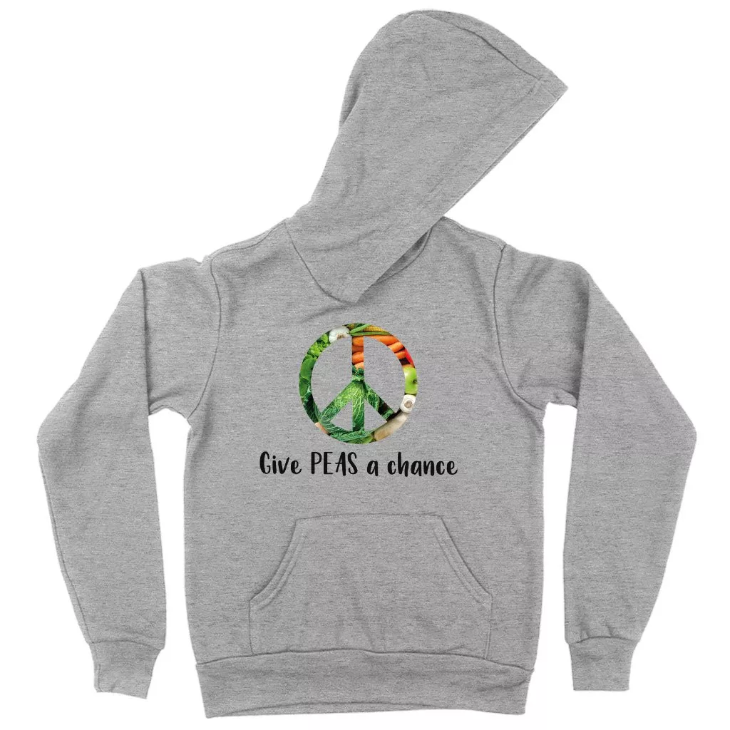 Kids’ Sponge Fleece Give Peas a Chance Funny Vegan Hoodie – Vegan Print Hoodie – Vegetarian Funny Hoodies