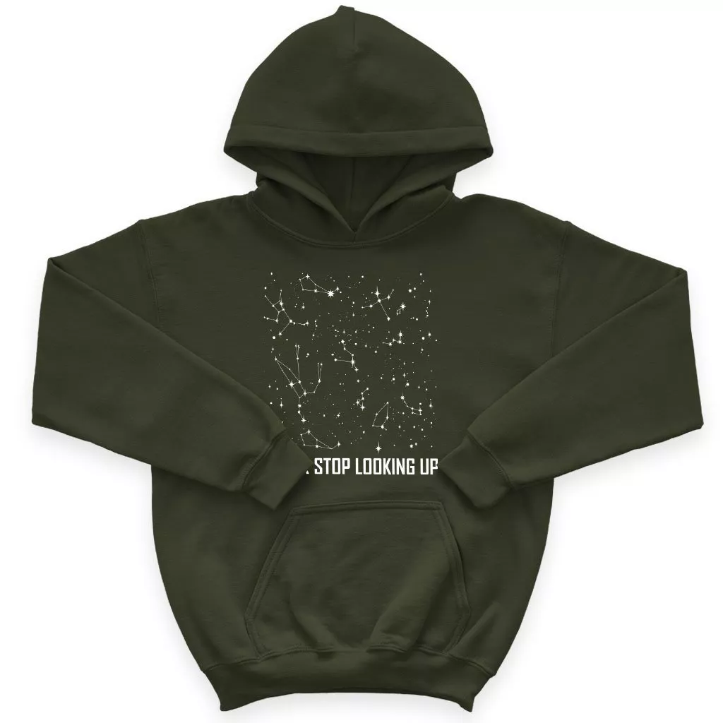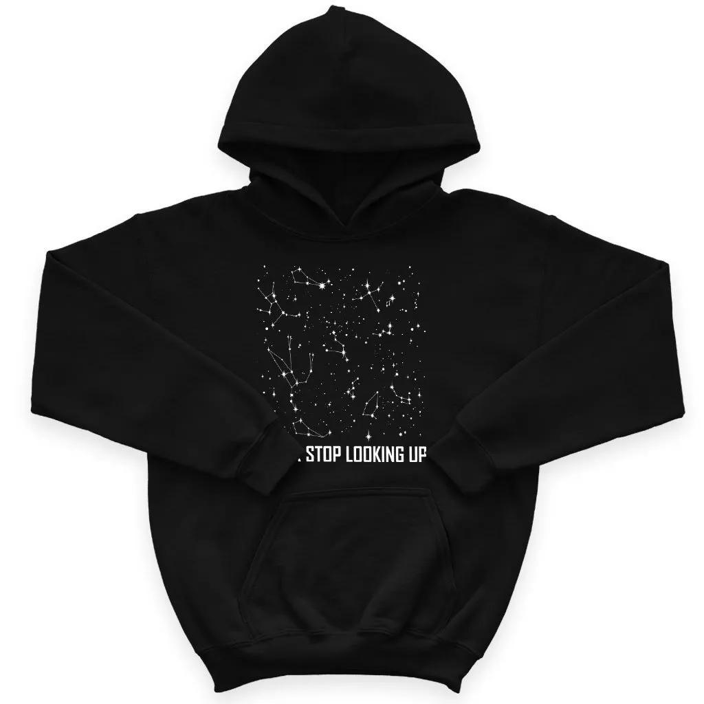 Kids’ Sponge Fleece Never Stop Looking Up Hoodie – Constellation Hoodie – Stars Hoodie