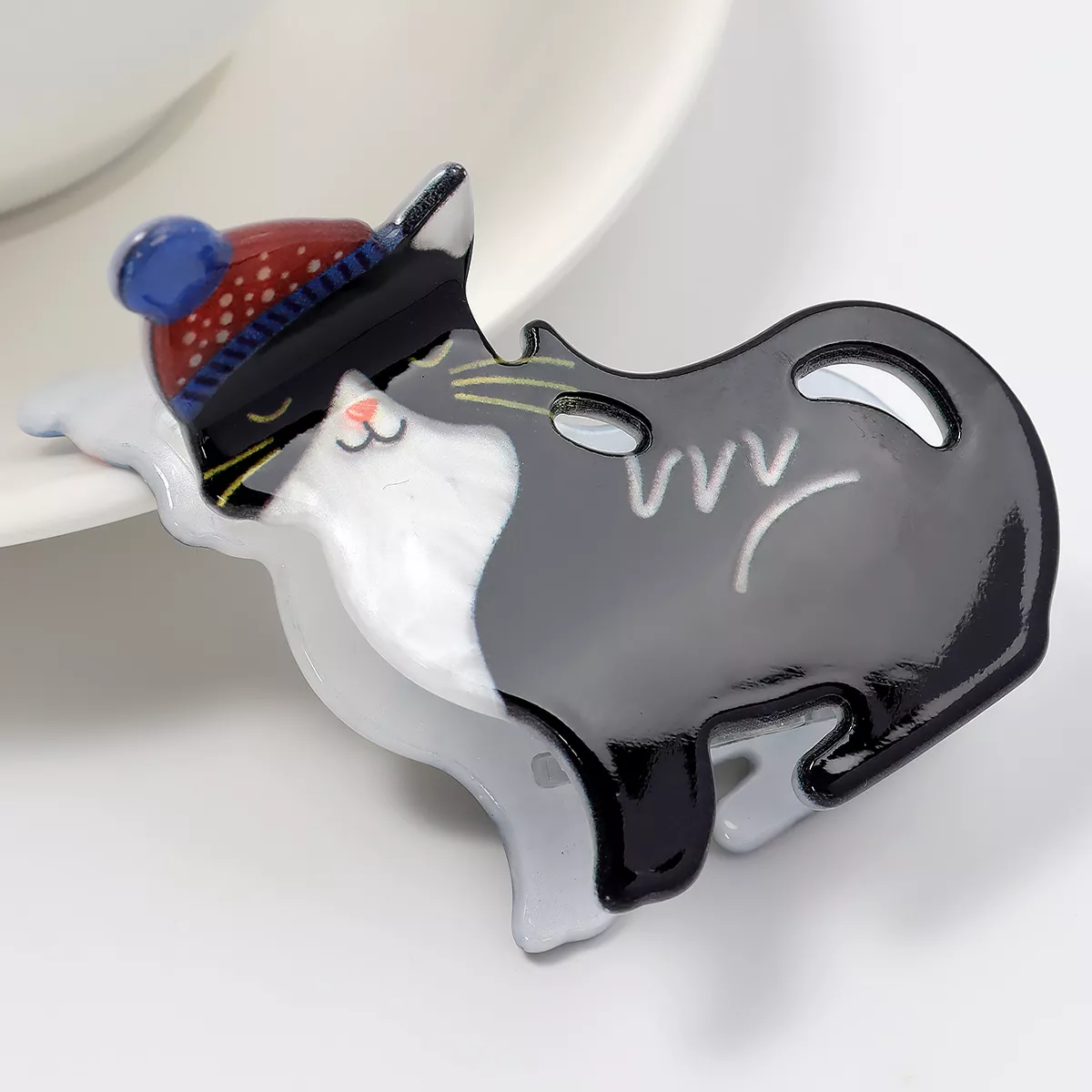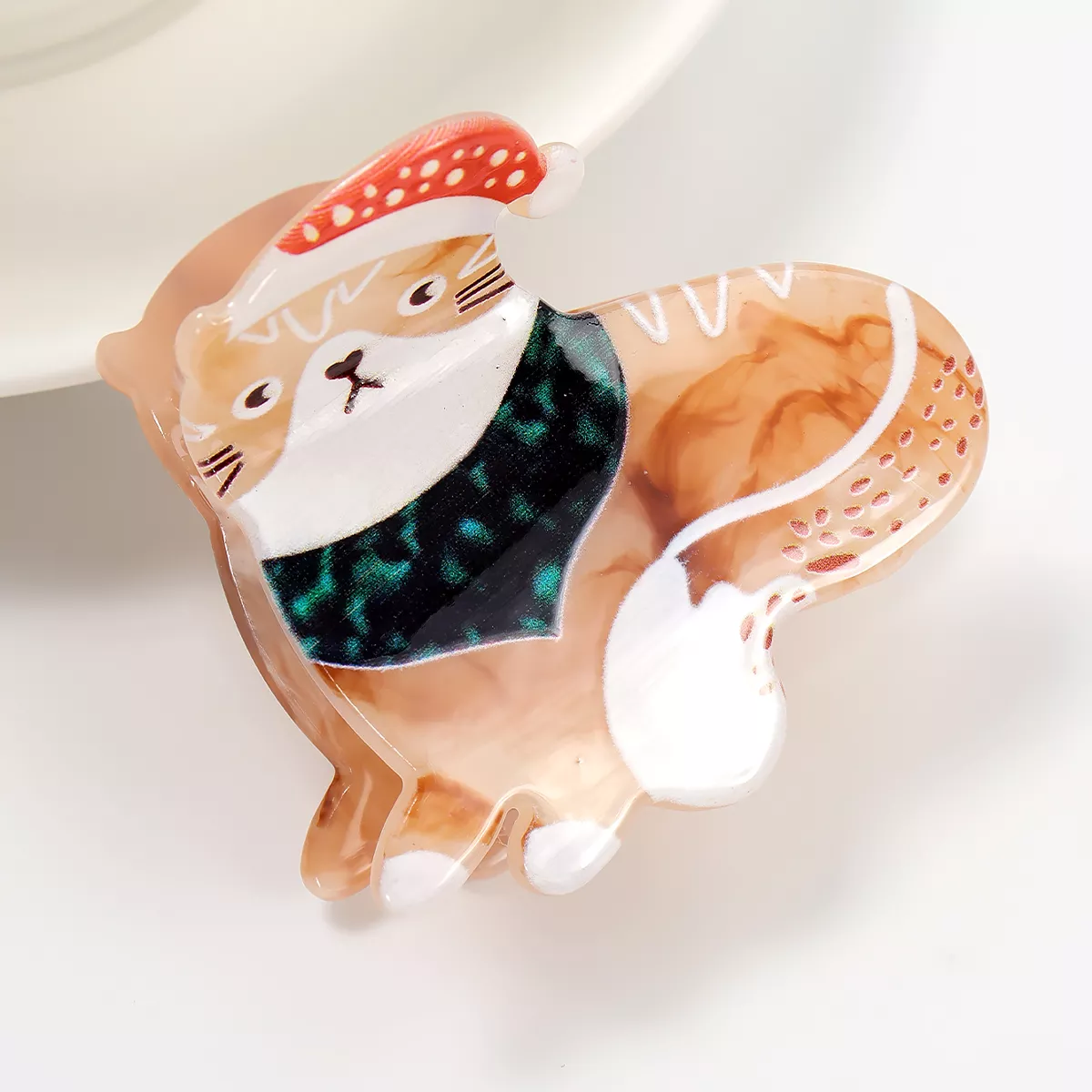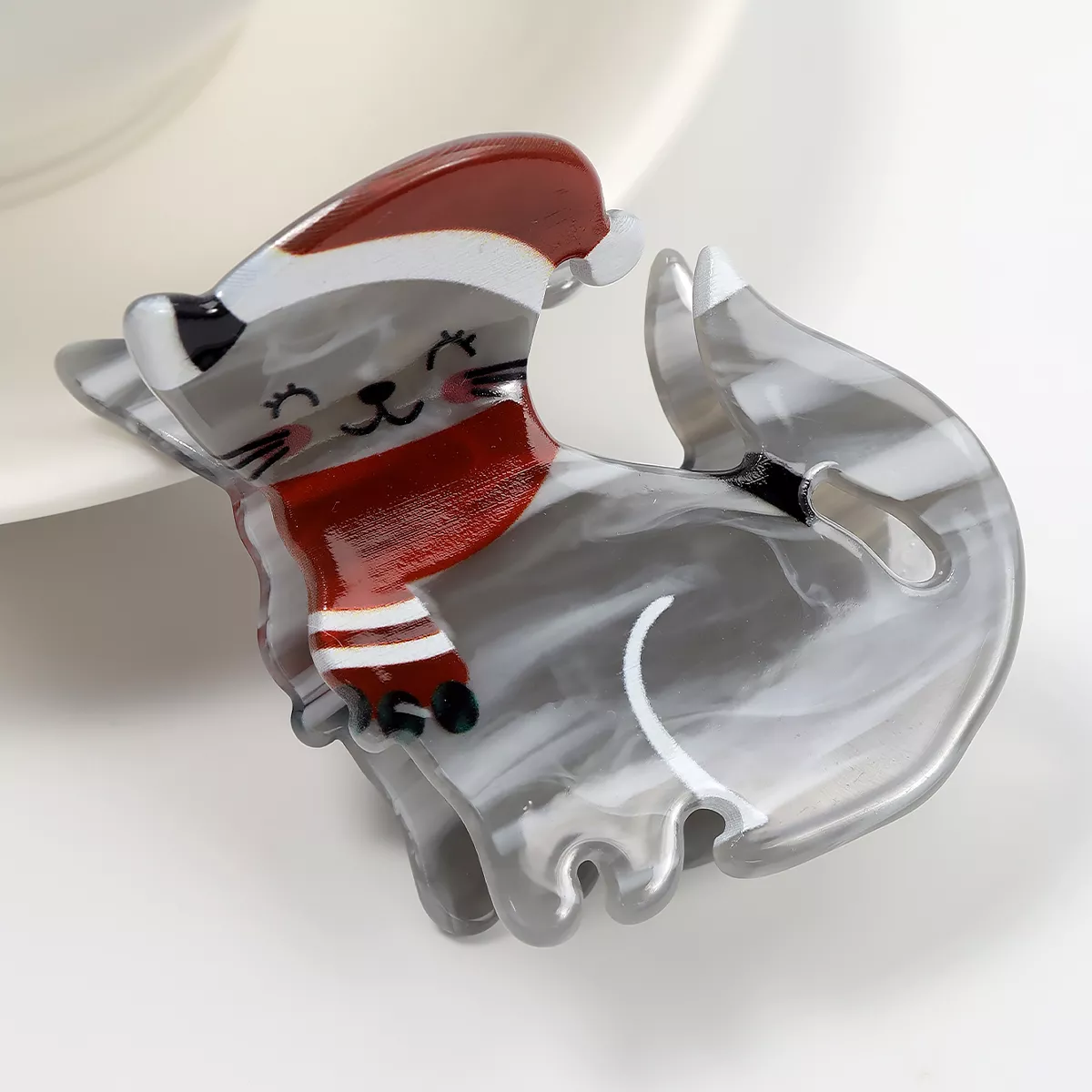 Featuring a playful animal design with a soft woolen kitten and a mini Santa hat, this hairpin brings instant joy and personality to your hairstyle. The acrylic grip clip ensures a secure hold without damaging your hair, while the shark clip style allows for easy and convenient styling. Whether you’re pinning up your hair for a casual day out or getting ready for a holiday party, this hairpin is the perfect accessory to add that final touch of fun and festivity.