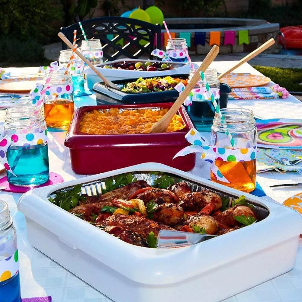 - Convenience: Bake and serve in the same pan to avoid messy transfers. Comes with a high-quality clear plastic lid for easy stacking and transport.