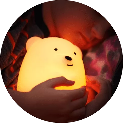 Our soft silicone night light for kids casts a gentle glow designed to calm children of all ages whether used as a cute lamp or cuddly companion.
