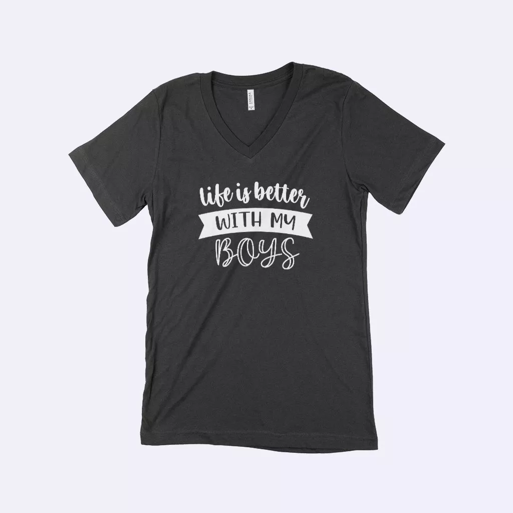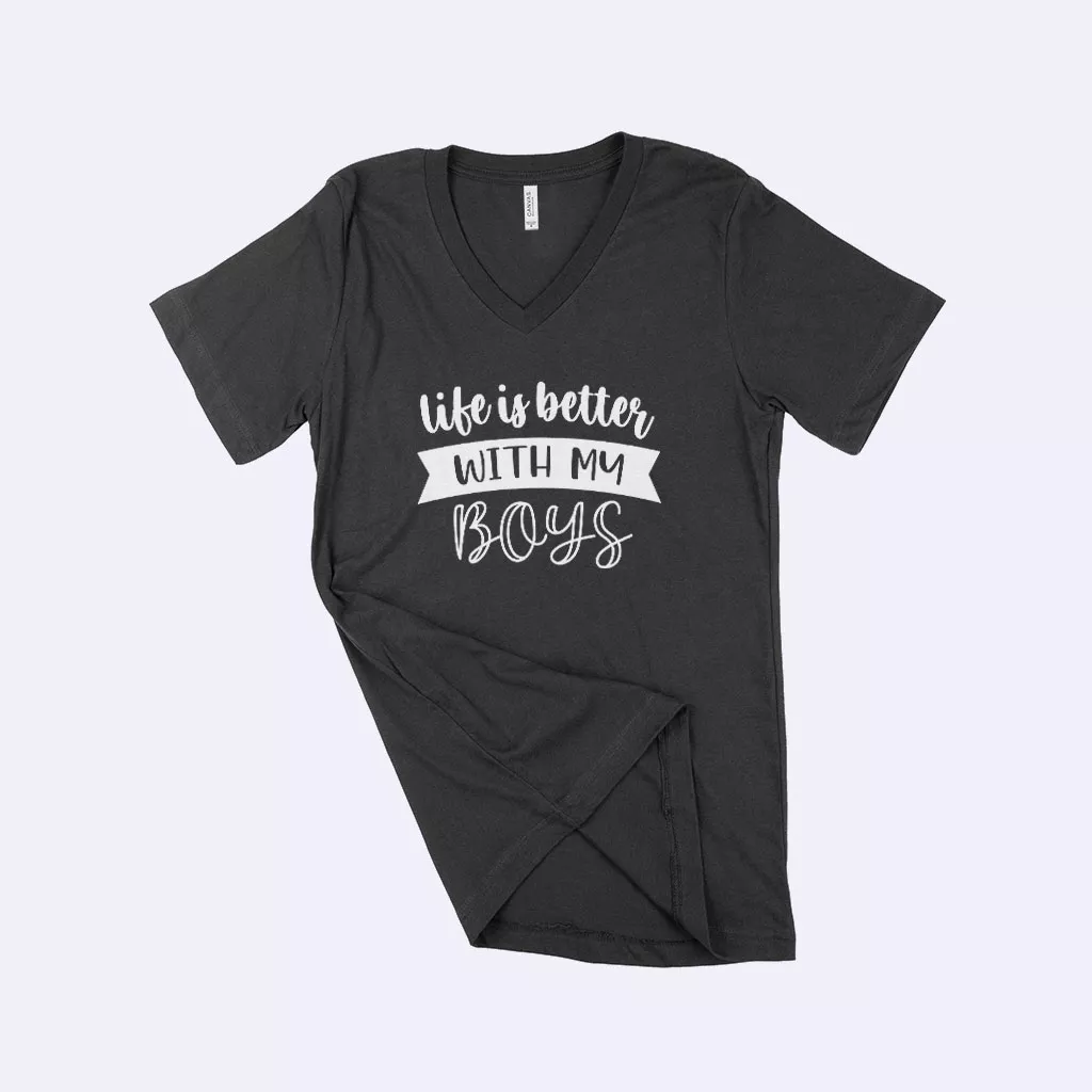 Life is Better with My Boys Women’s Jersey V-Neck T-Shirt