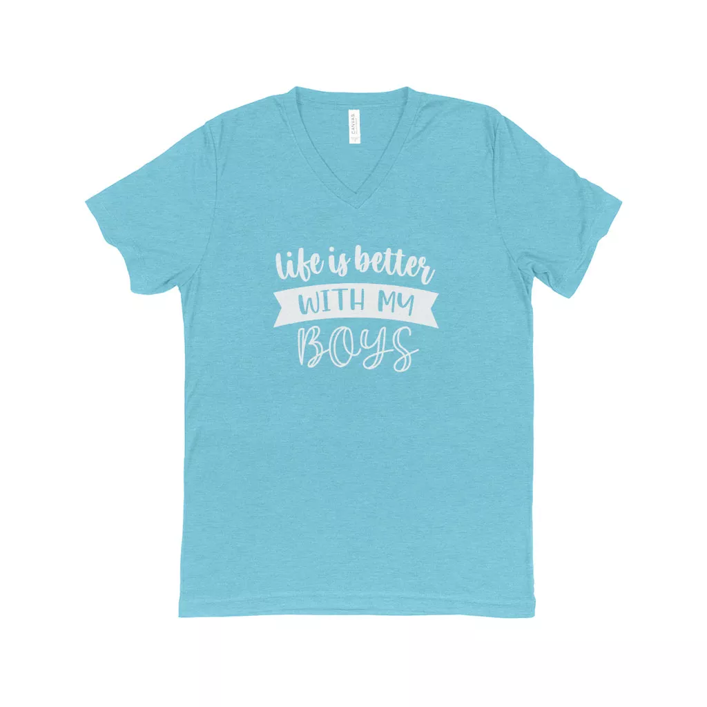 Life is Better with My Boys Women’s Triblend V-Neck T-Shirt