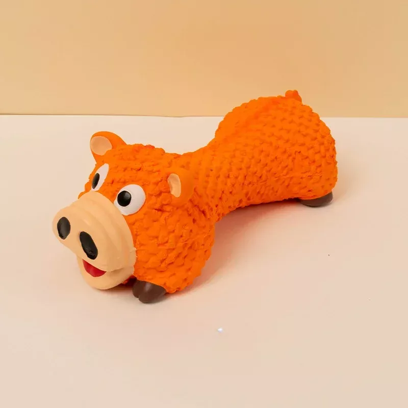 Keep your furry friend happy and engaged with our long-body latex dog toys, featuring charming orange pig and green cow designs. Perfect for small dogs, these toys are designed to provide hours of entertainment while promoting dental health. Made from high-quality fleece and latex, they are safe, durable, and irresistibly fun for your pet.