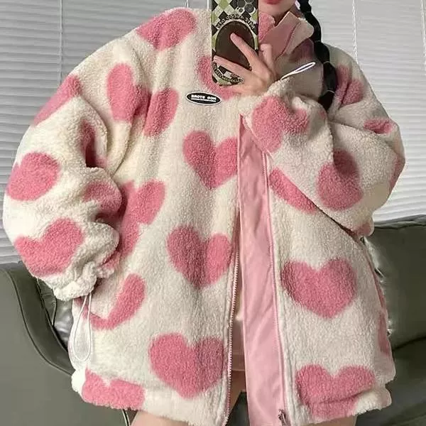 Embrace the cooler seasons in style with our Luxurious Y2K Love Lambswool Warm Jacket. Designed for those who appreciate the blend of vintage charm and modern flair, this double-sided collar jacket is the epitome of autumn and winter coziness. Its plush lambswool interior ensures you stay warm, while the stylish exterior makes you stand out in any crowd. Perfect for couples seeking a harmonious blend of comfort and style, this loose-fit jacket is a wardrobe must-have.