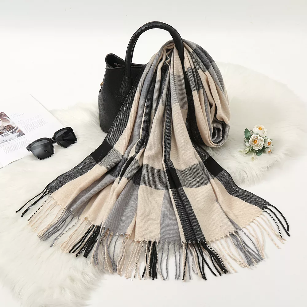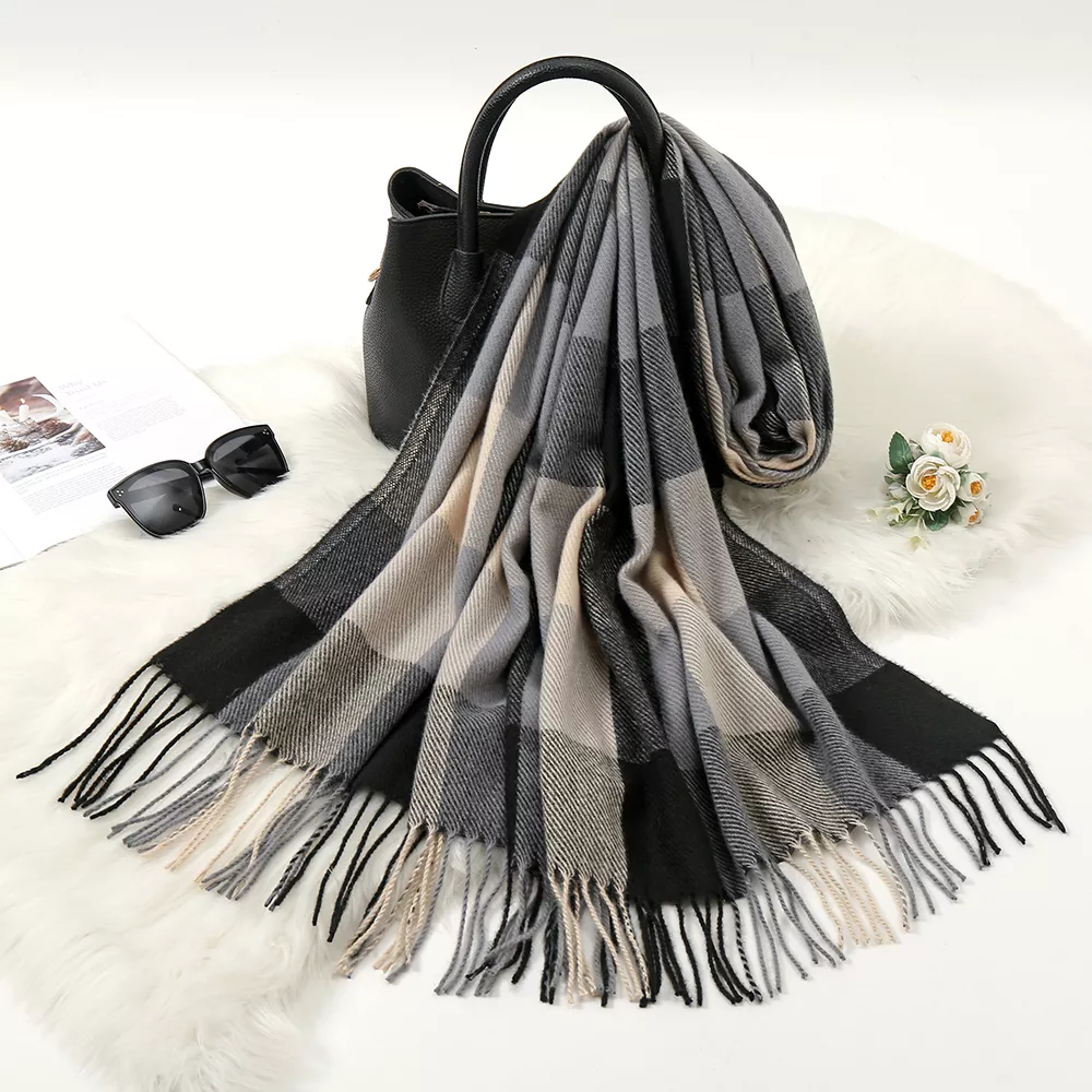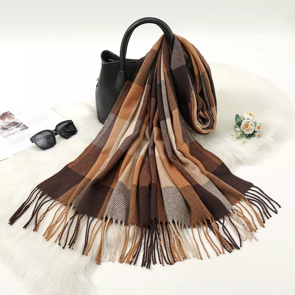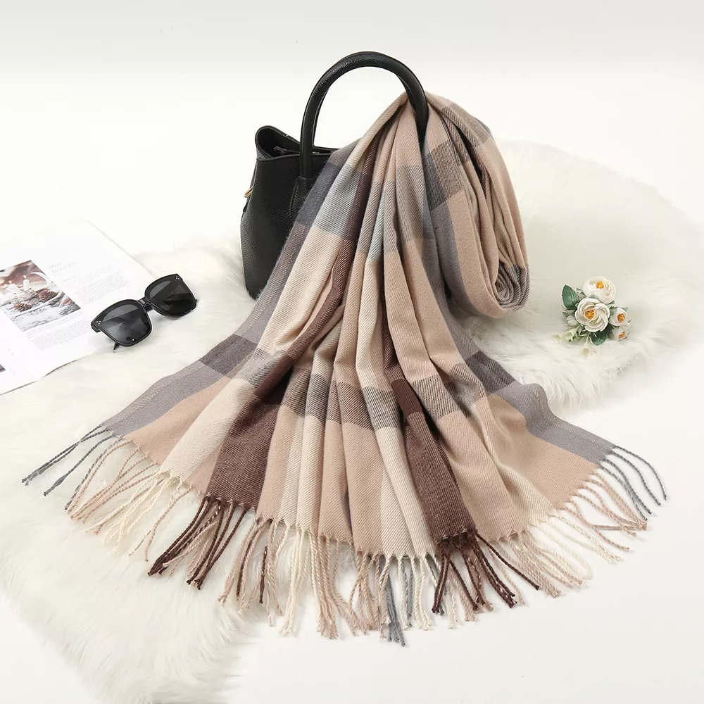 Stay Warm in Style: Luxury Cashmere Plaid Scarf for Women