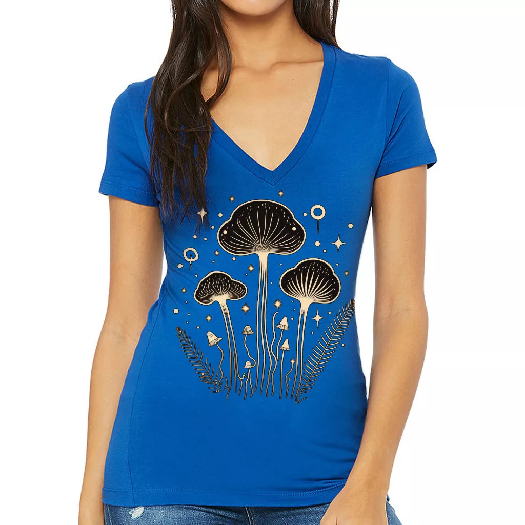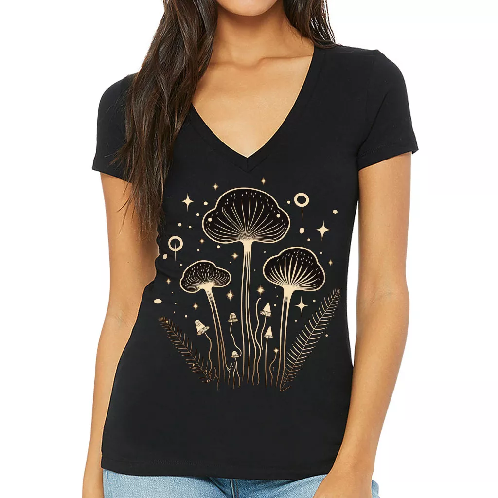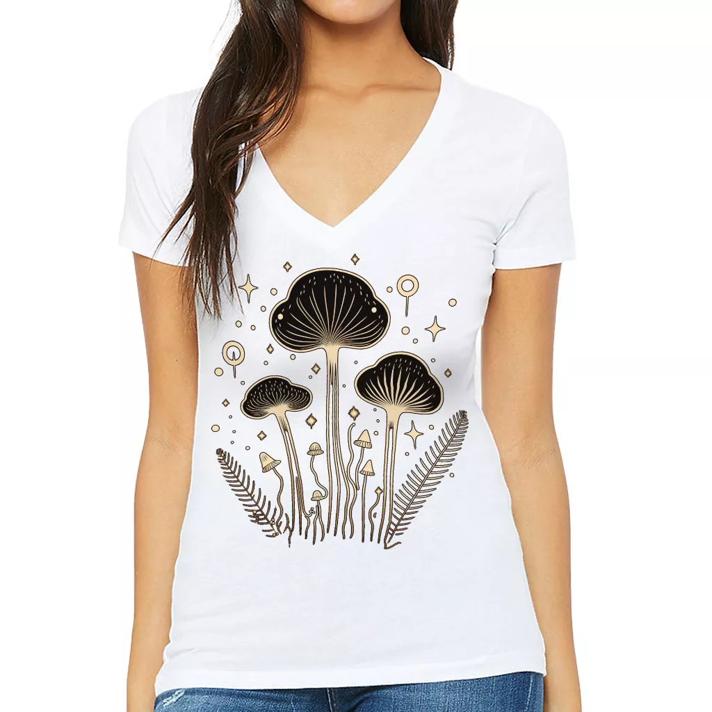Magic Mushroom Women’s V-Neck T-Shirt – Cool Art V-Neck Tee – Printed T-Shirt