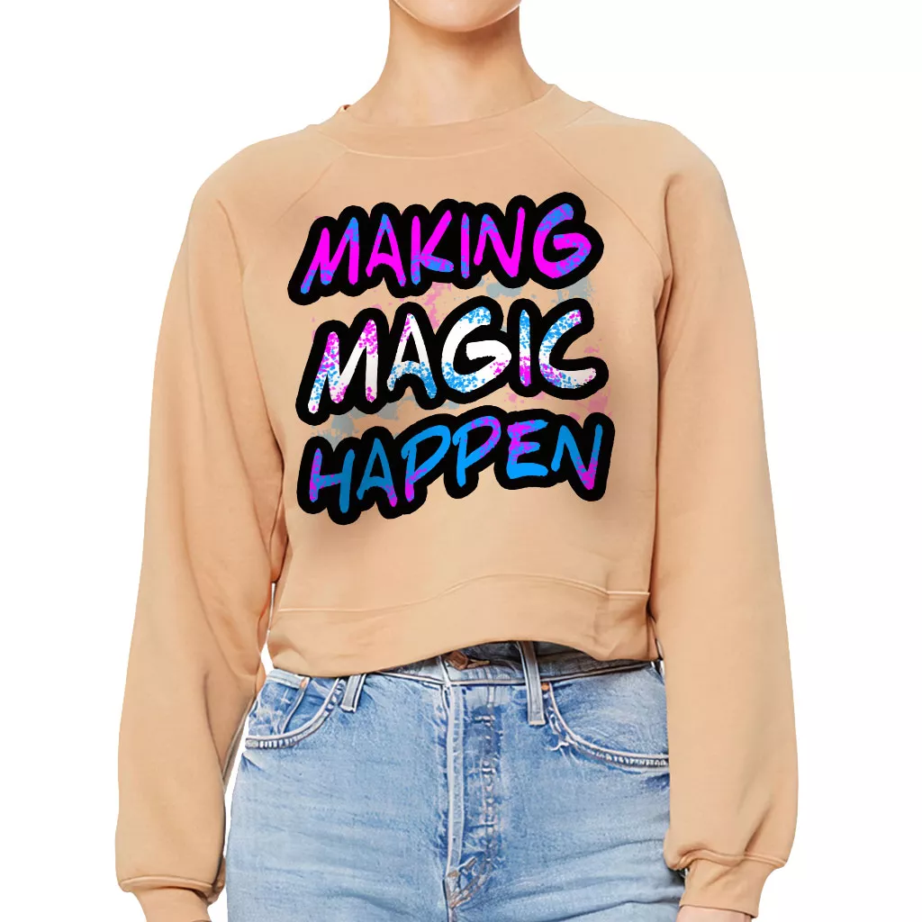 Making Magic Happen Raglan Pullover – Graphic Women’s Sweatshirt – Cute Pullover