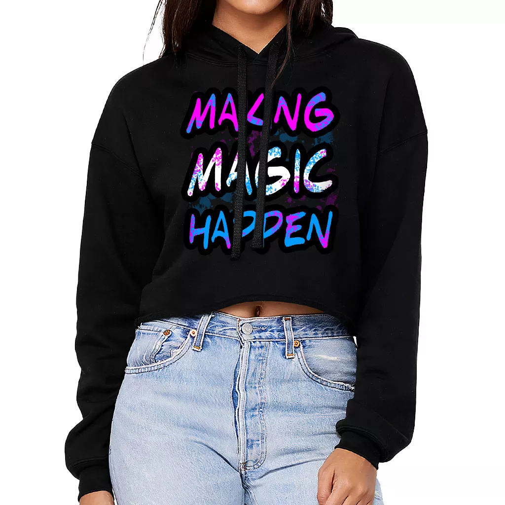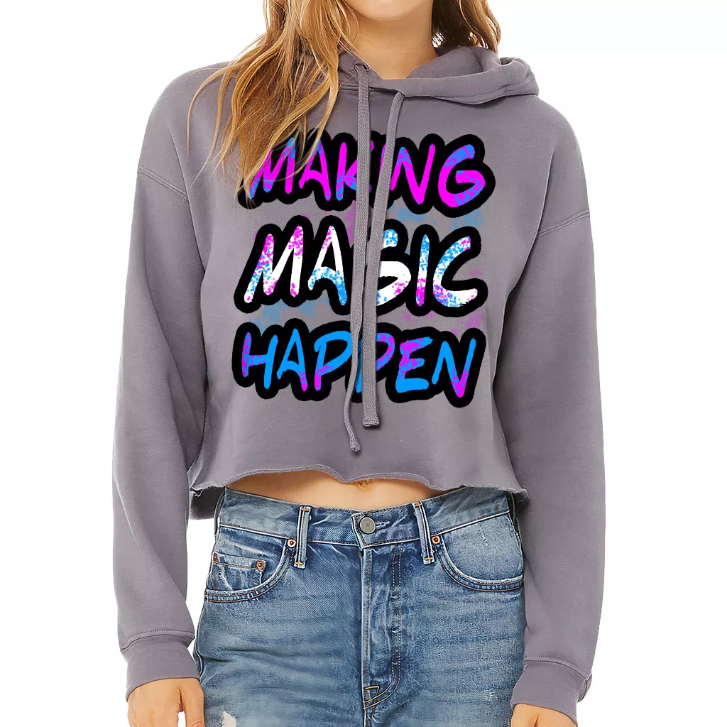 Making Magic Happen Women’s Cropped Hoodie – Graphic Cropped Hoodie – Cute Hooded Sweatshirt
