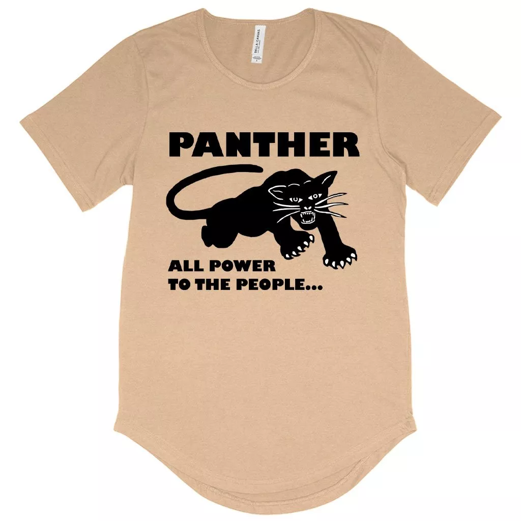Men’s All Power to the People T-Shirt with Curved Hem – Black Panther Men’s T-Shirt – Panther Graphic Tee Shirt