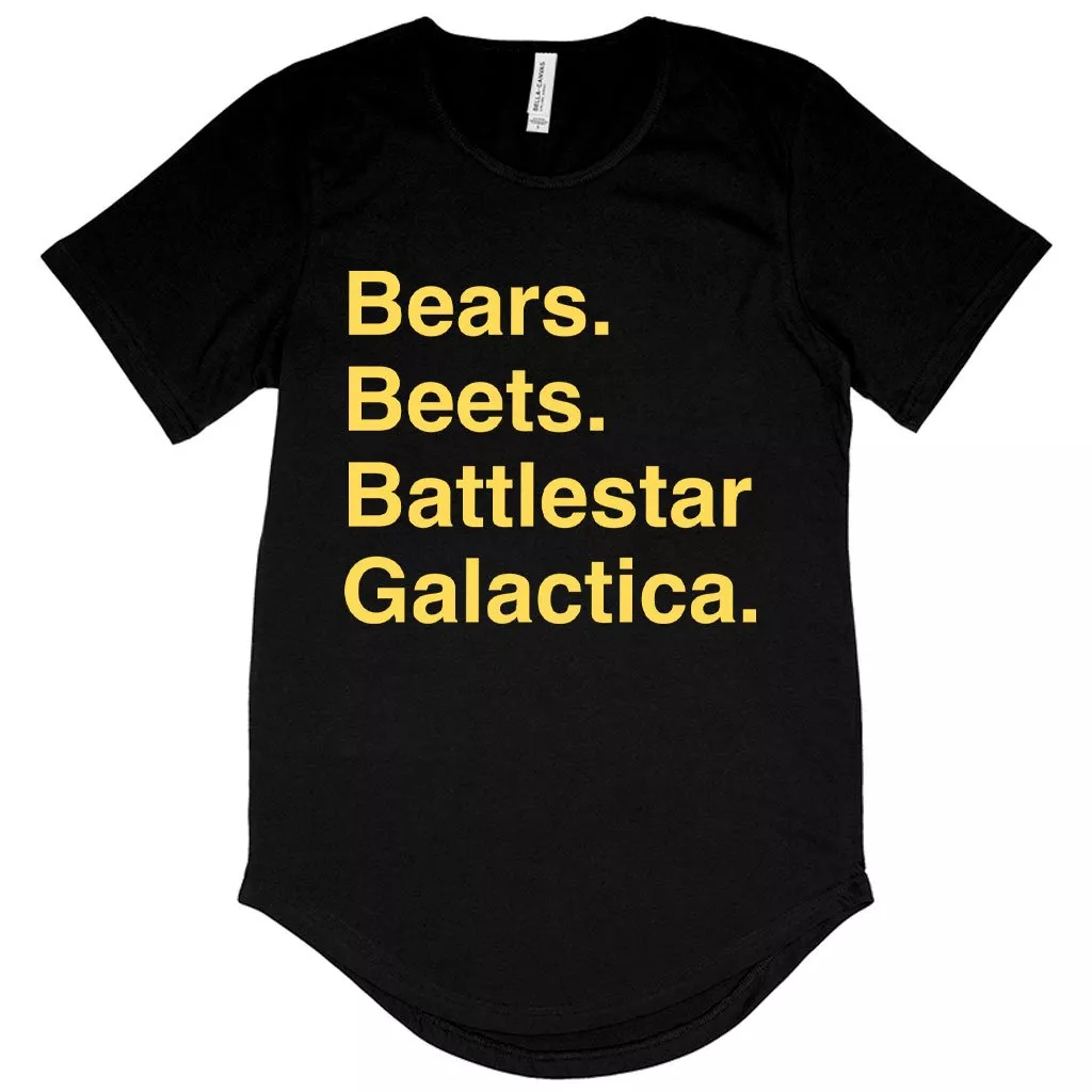 Men’s Bears Beets Battlestar Galactica T-Shirt with Curved Hem – BSG T-Shirt