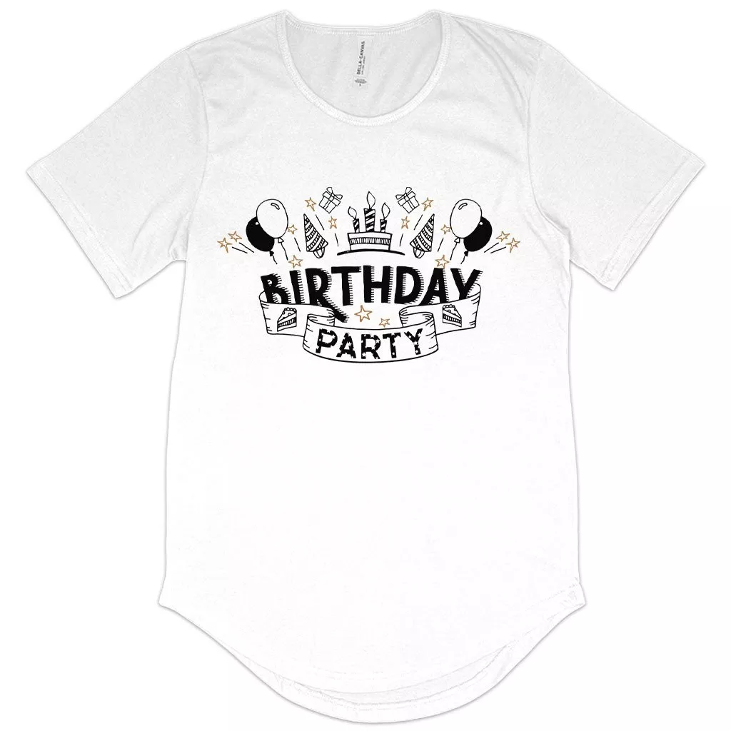 Men’s Birthday Party T-Shirt with Curved Hem – Birthday Celebration T-Shirts