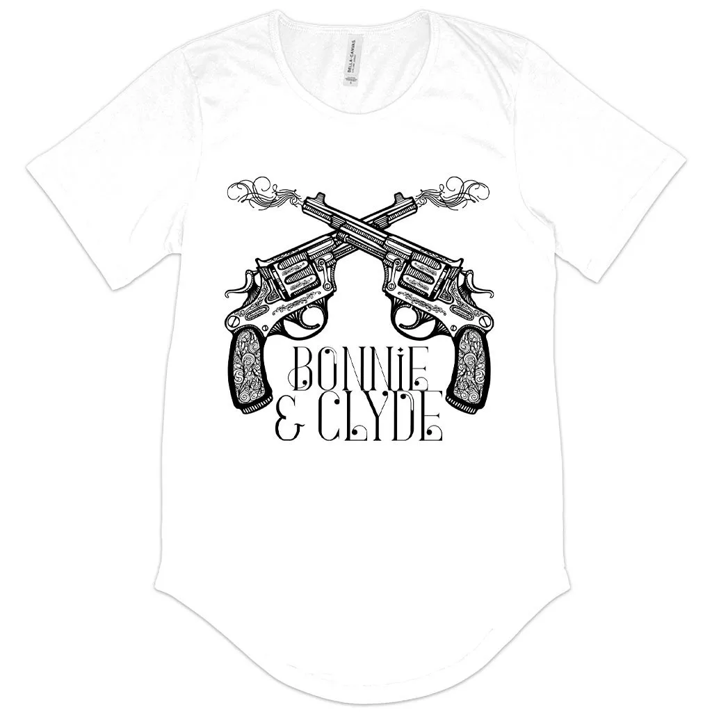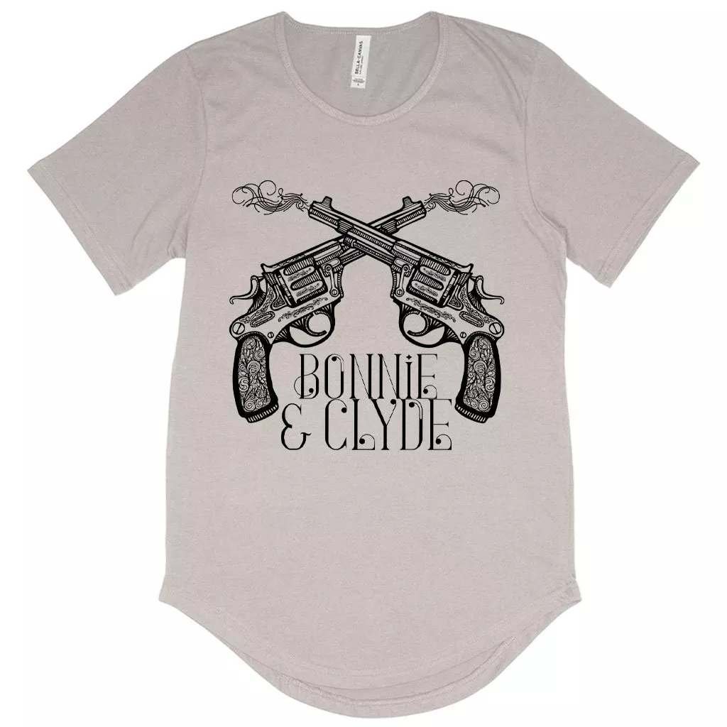 Men’s Bonnie and Clyde T-Shirt with Curved Hem – Gun T-Shirt – Bonnie and Clyde Clothing