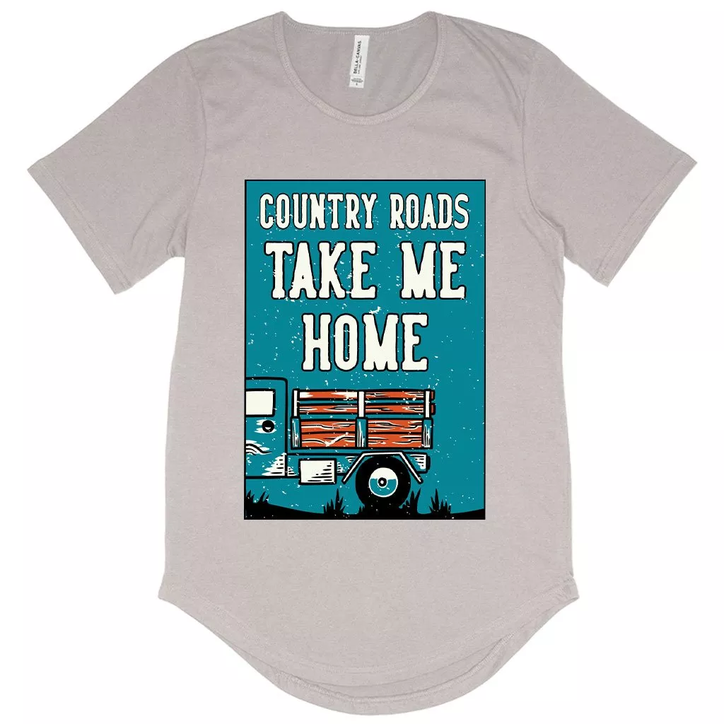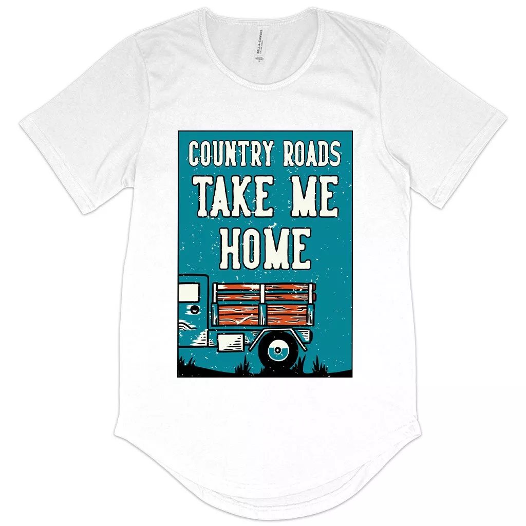 Men’s Country Roads Take Me Home T-Shirt with Curved Hem – Vintage Clothing
