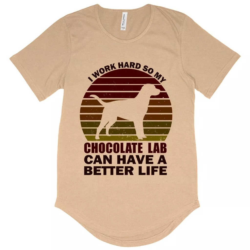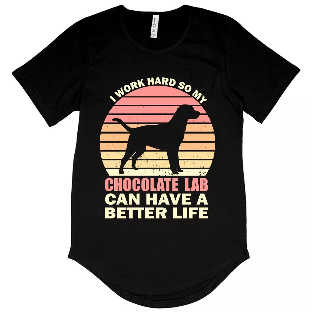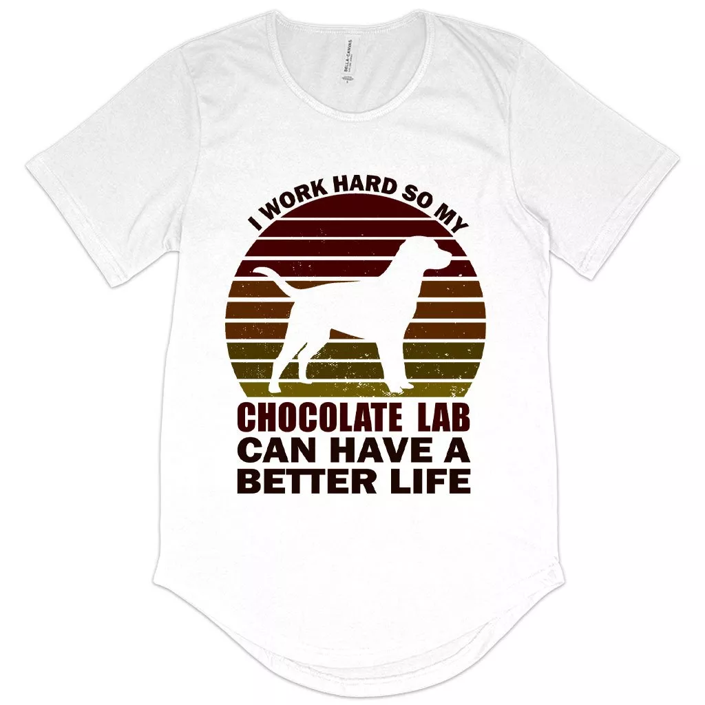Men’s I Work Hard T-Shirt with Curved Hem – Chocolate Lab T-Shirt – Funny Dog T-Shirts