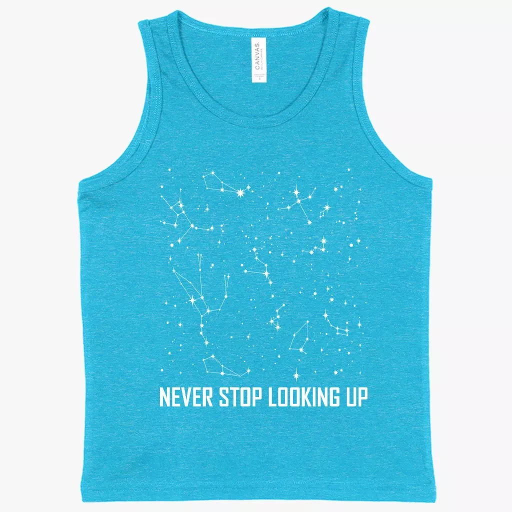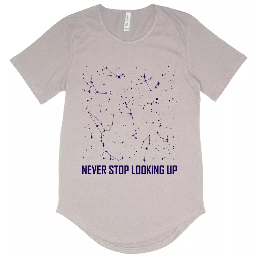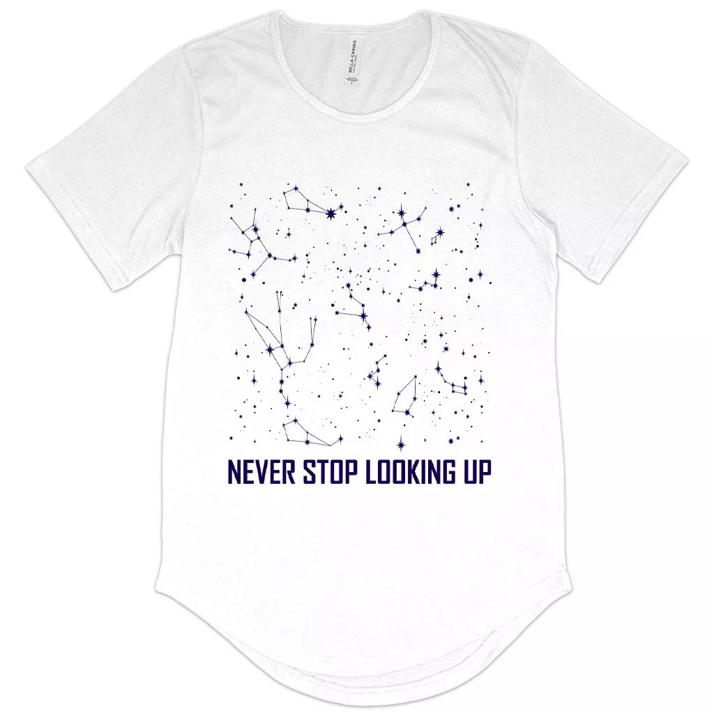 Men’s Never Stop Looking Up T-Shirt with Curved Hem – Constellation T-Shirt – Stars T-Shirt