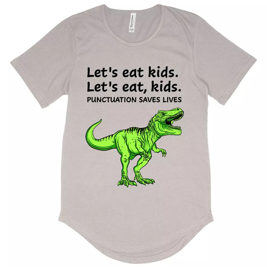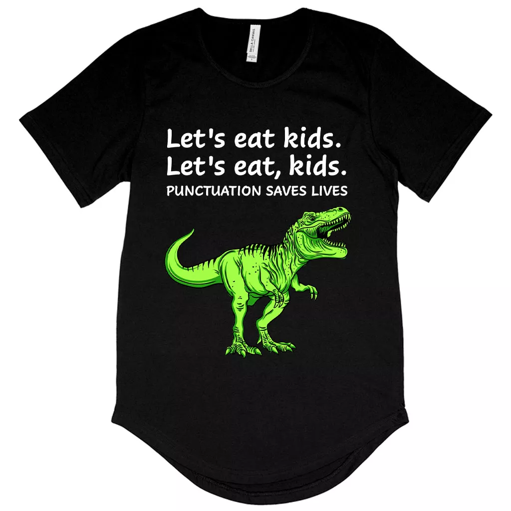 Men’s Punctuation Saves Lives Dinosaur T-Shirt with Curved Hem – Unique Men’s T-Shirt