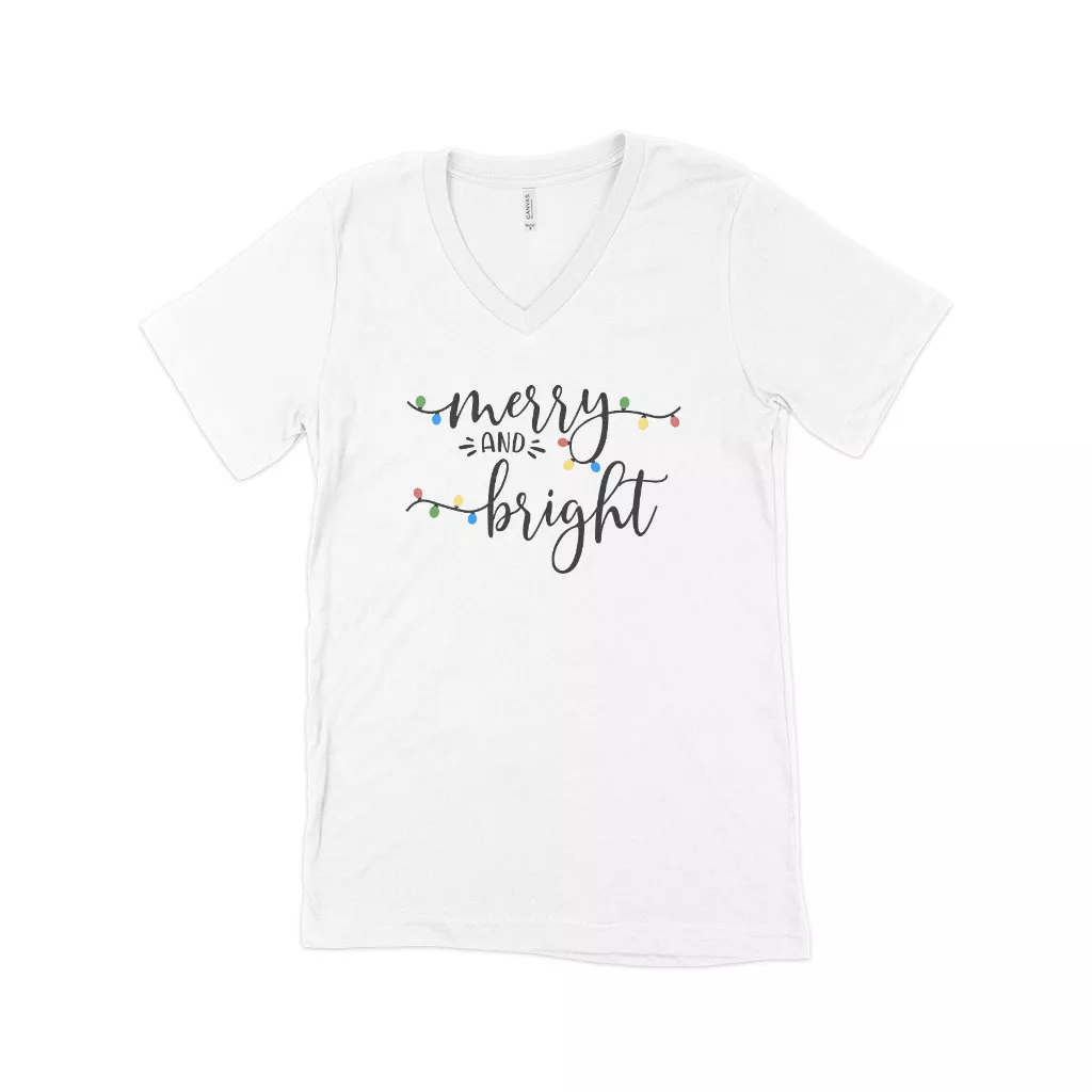 Looking for a relaxed and comfortable t-shirt? Look no further than Merry and Bright Christmas Unisex Jersey V-Neck T-Shirt. Made from soft and lightweight fabric, Merry and Bright Christmas Unisex Jersey V-Neck T-Shirt is perfect for everyday wear. And with a stylish v-neck design, it’s sure to turn heads too!