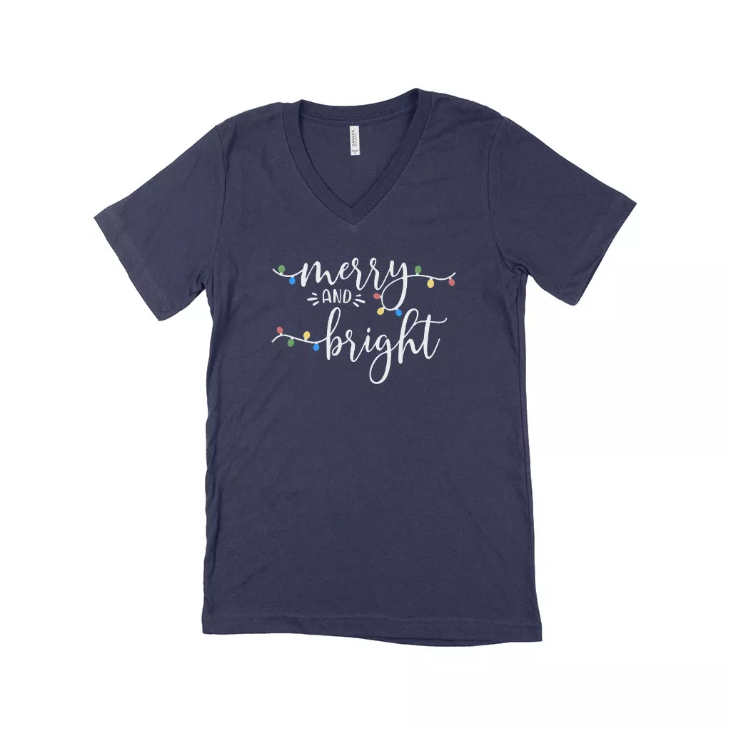 Merry and Bright Christmas Unisex Jersey V-Neck T-Shirt