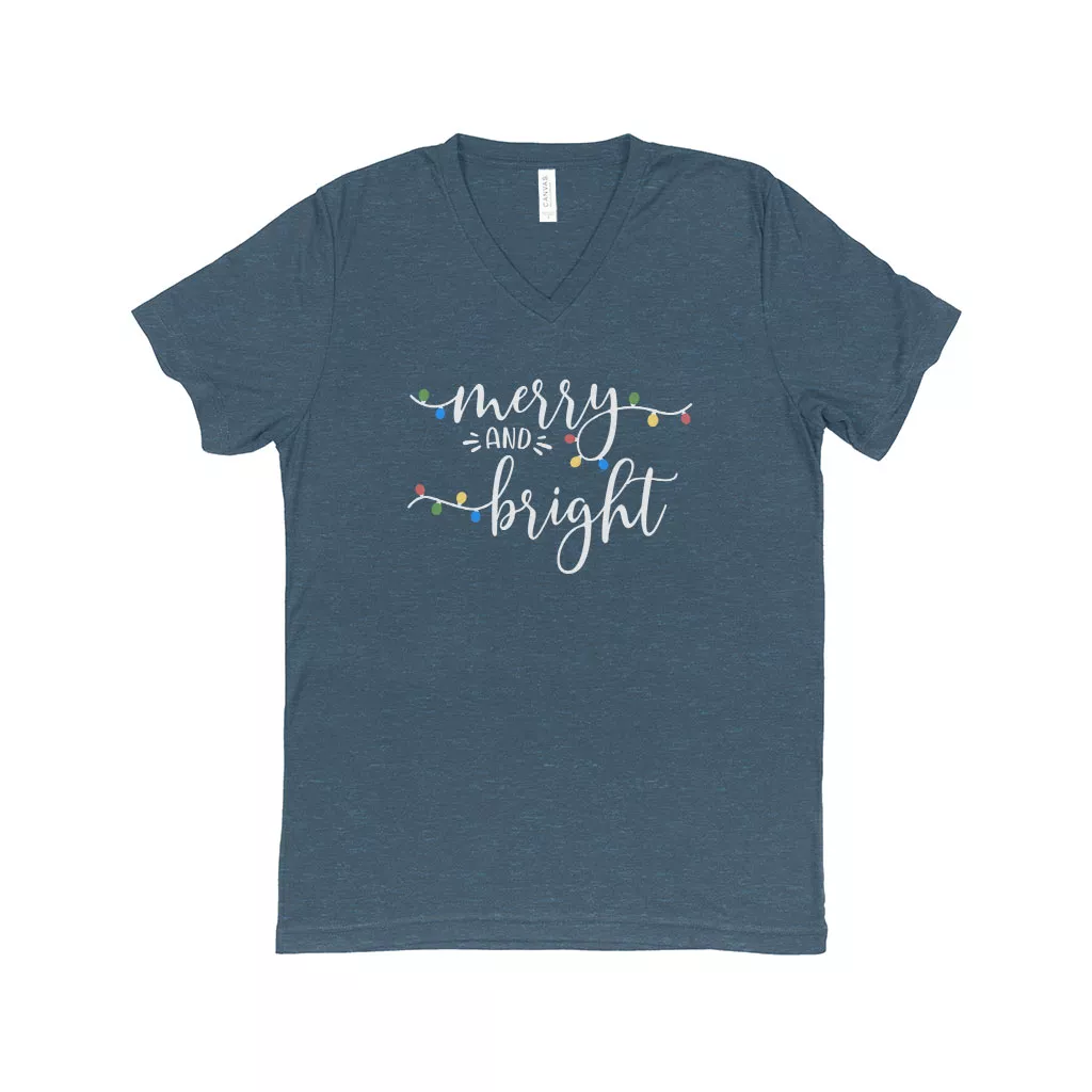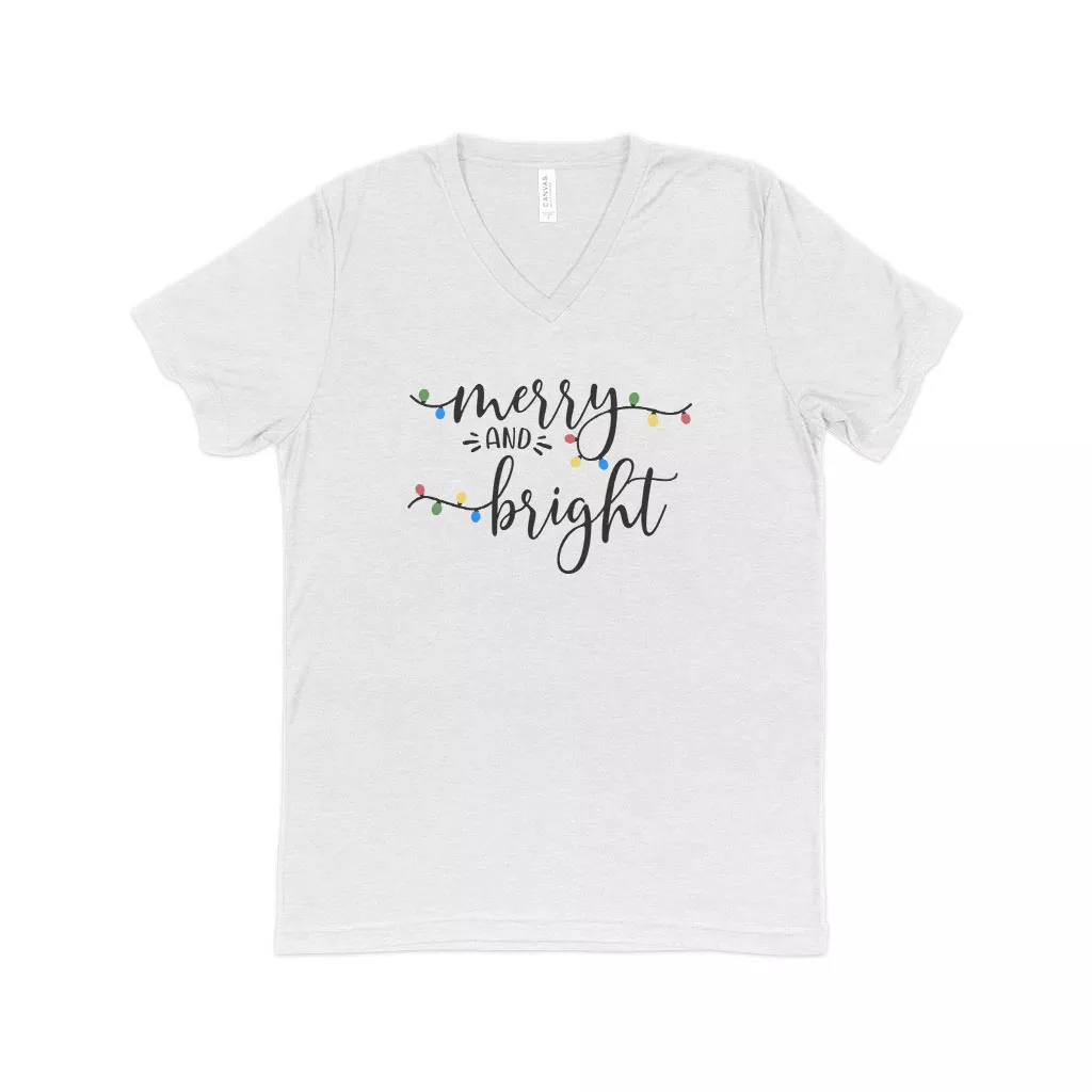 Merry and Bright Christmas Unisex Triblend V-Neck T-Shirt