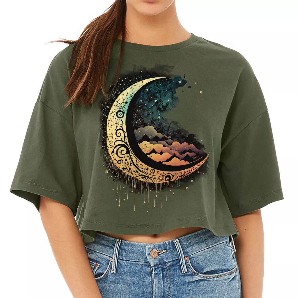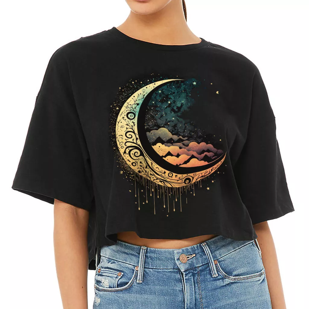 Moon Graphic Women’s Crop Tee Shirt – Cool Art Cropped T-Shirt – Printed Crop Top