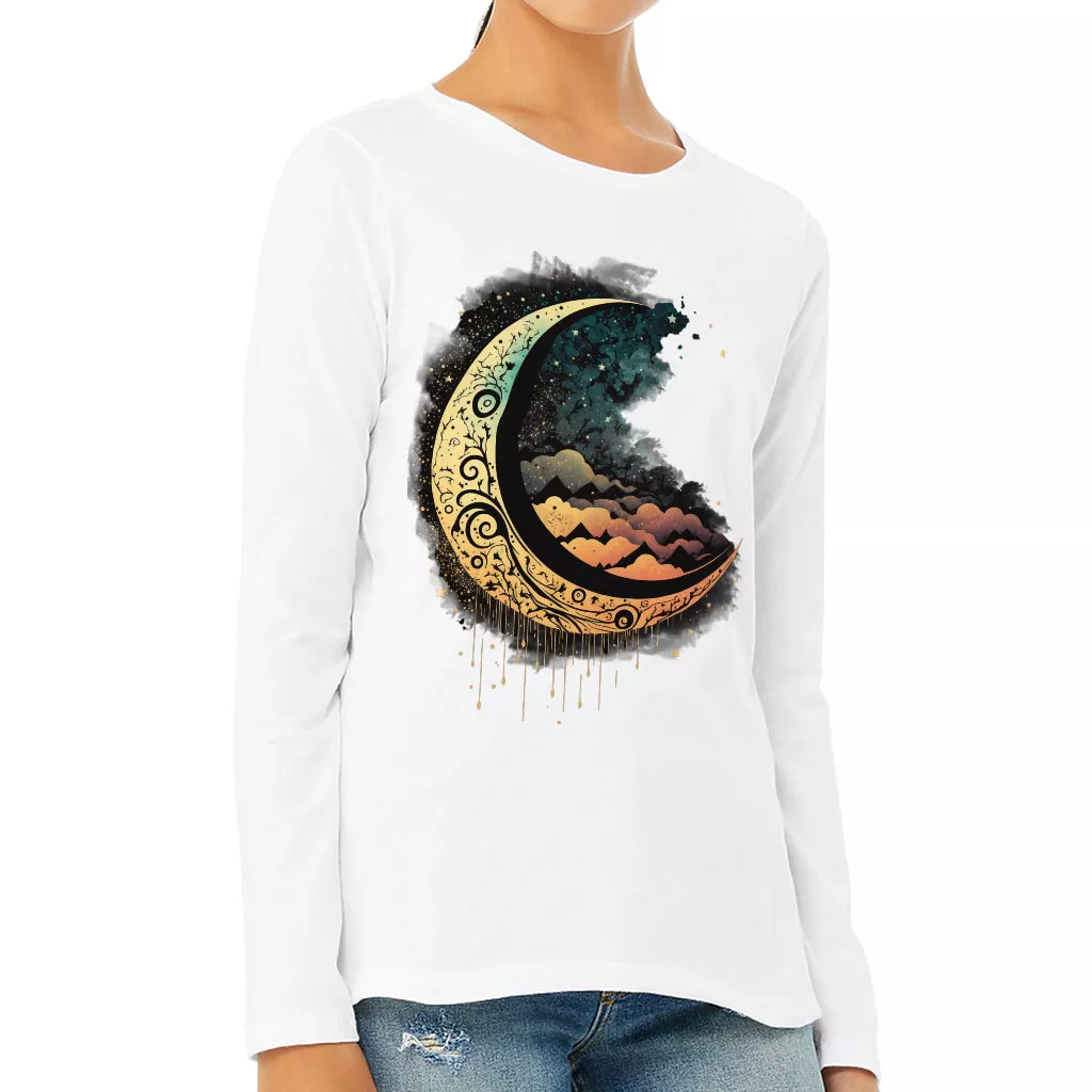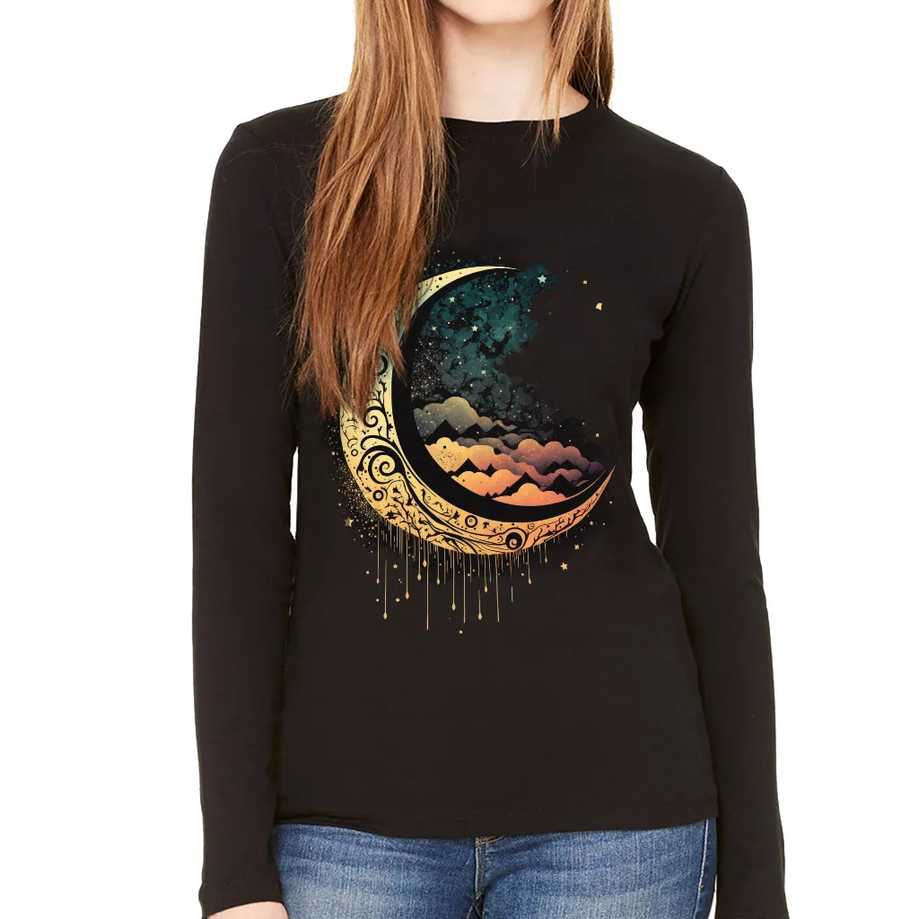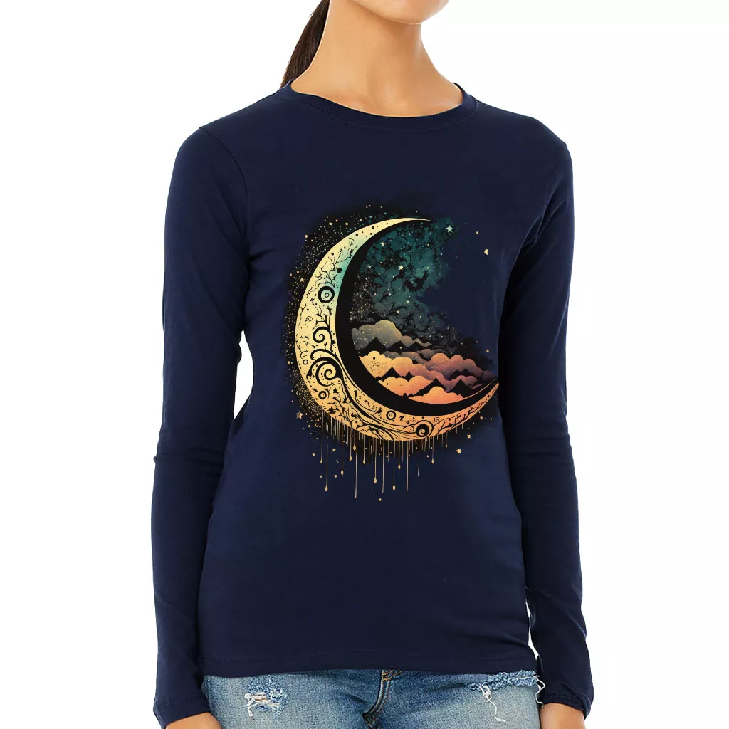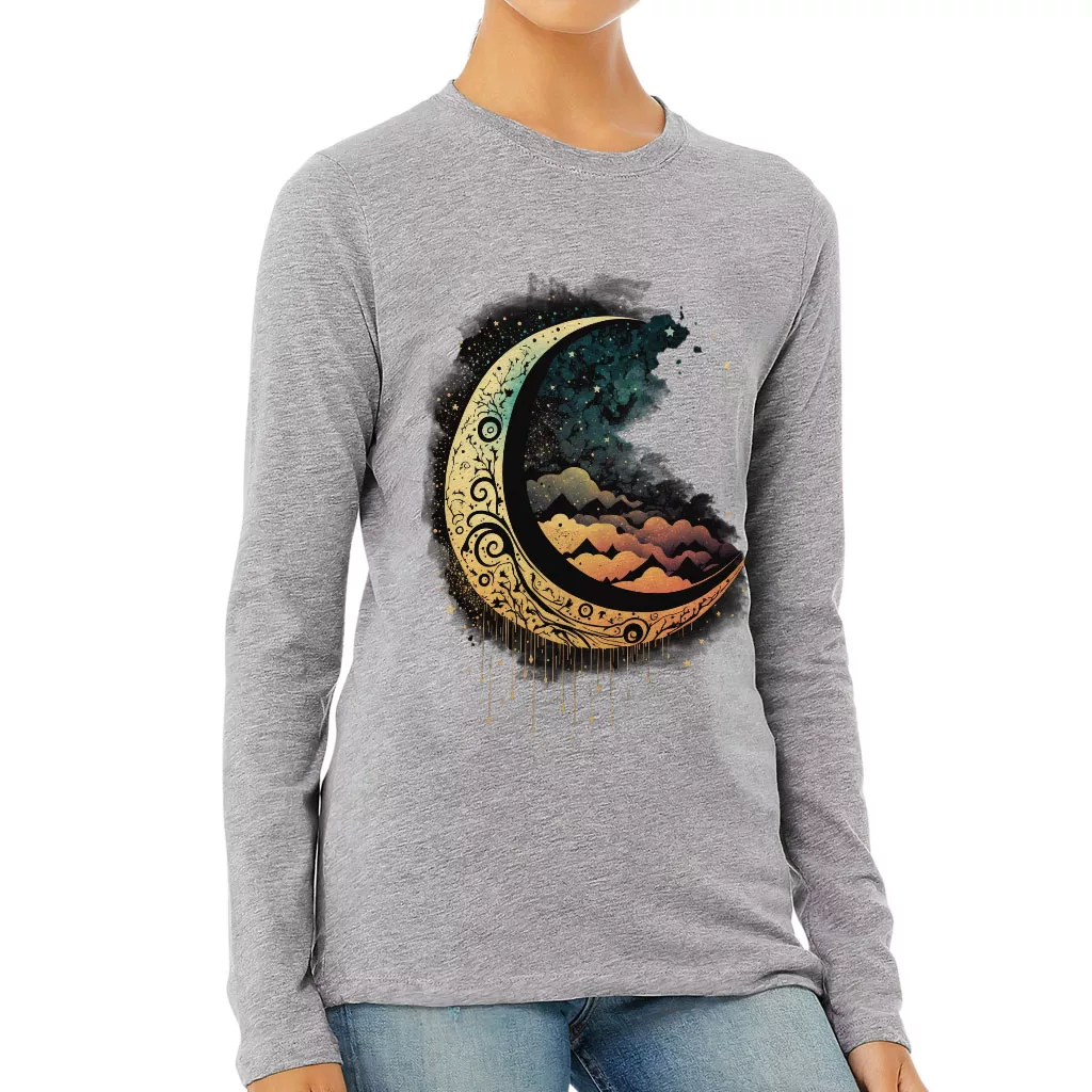 Moon Graphic Women’s Long Sleeve T-Shirt – Cool Art Long Sleeve Tee – Printed T-Shirt