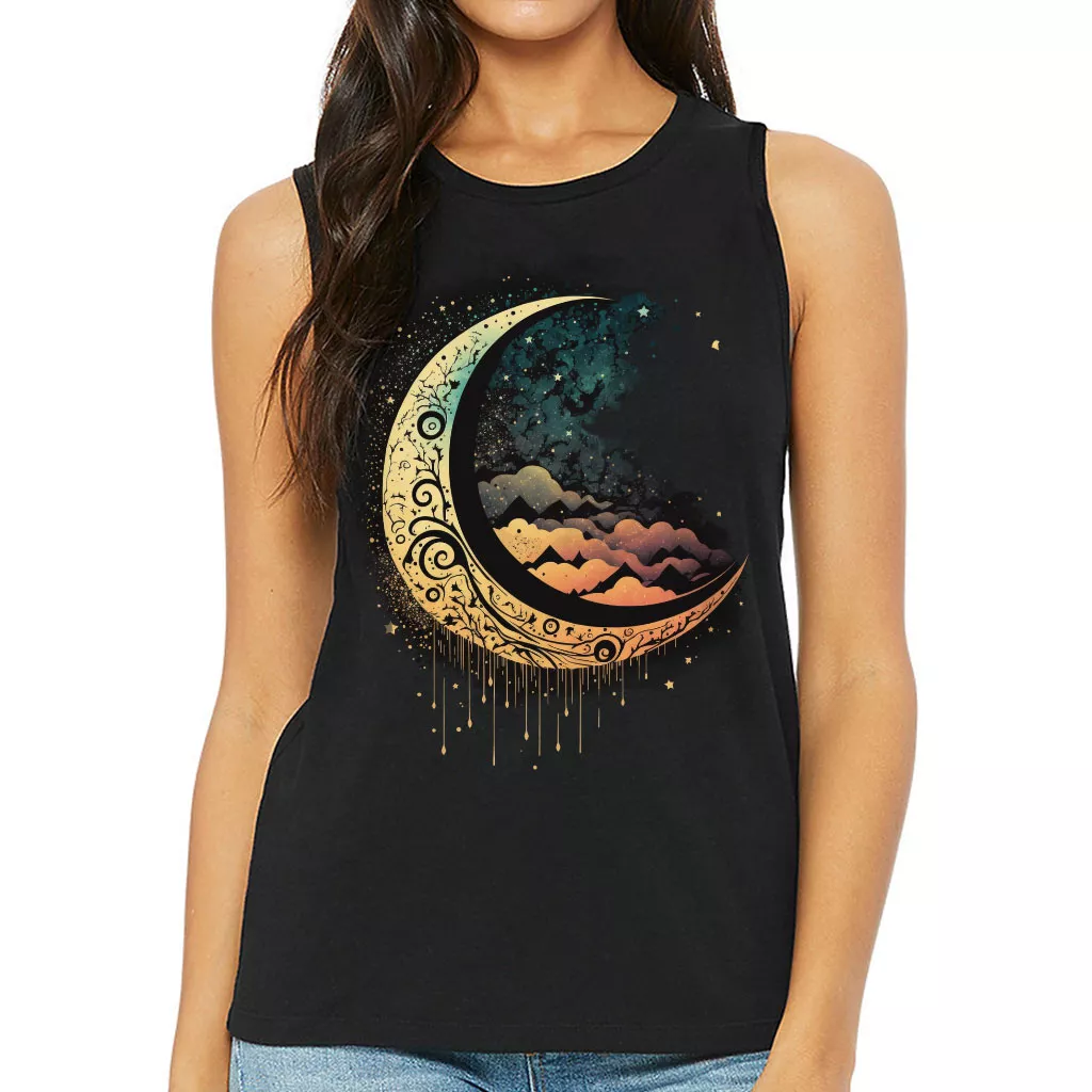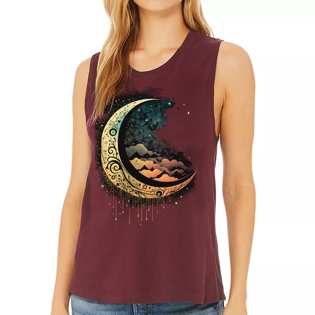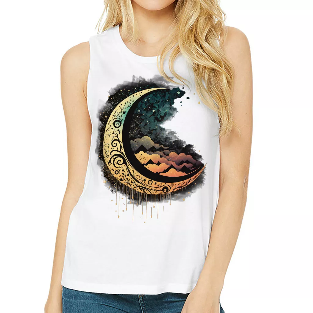 Moon Graphic Women’s Muscle Tank – Cool Art Tank Top – Printed Workout Tank