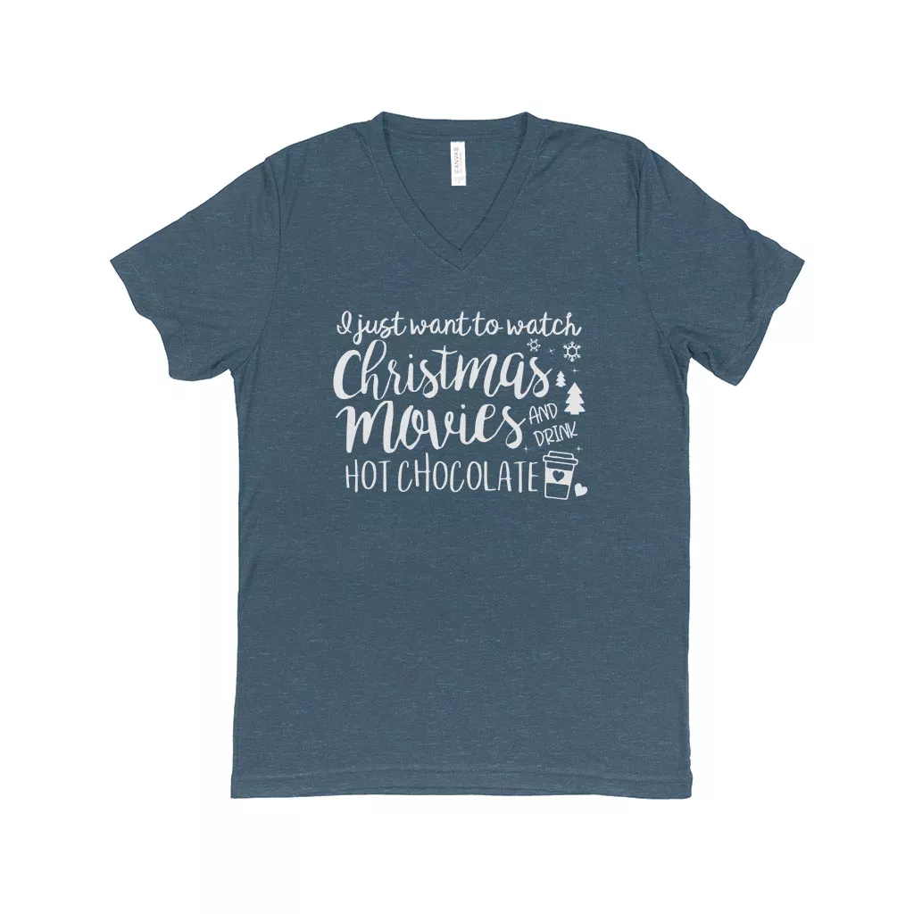 Movies & Hot Chocolate Unisex Triblend V-Neck T-Shirt