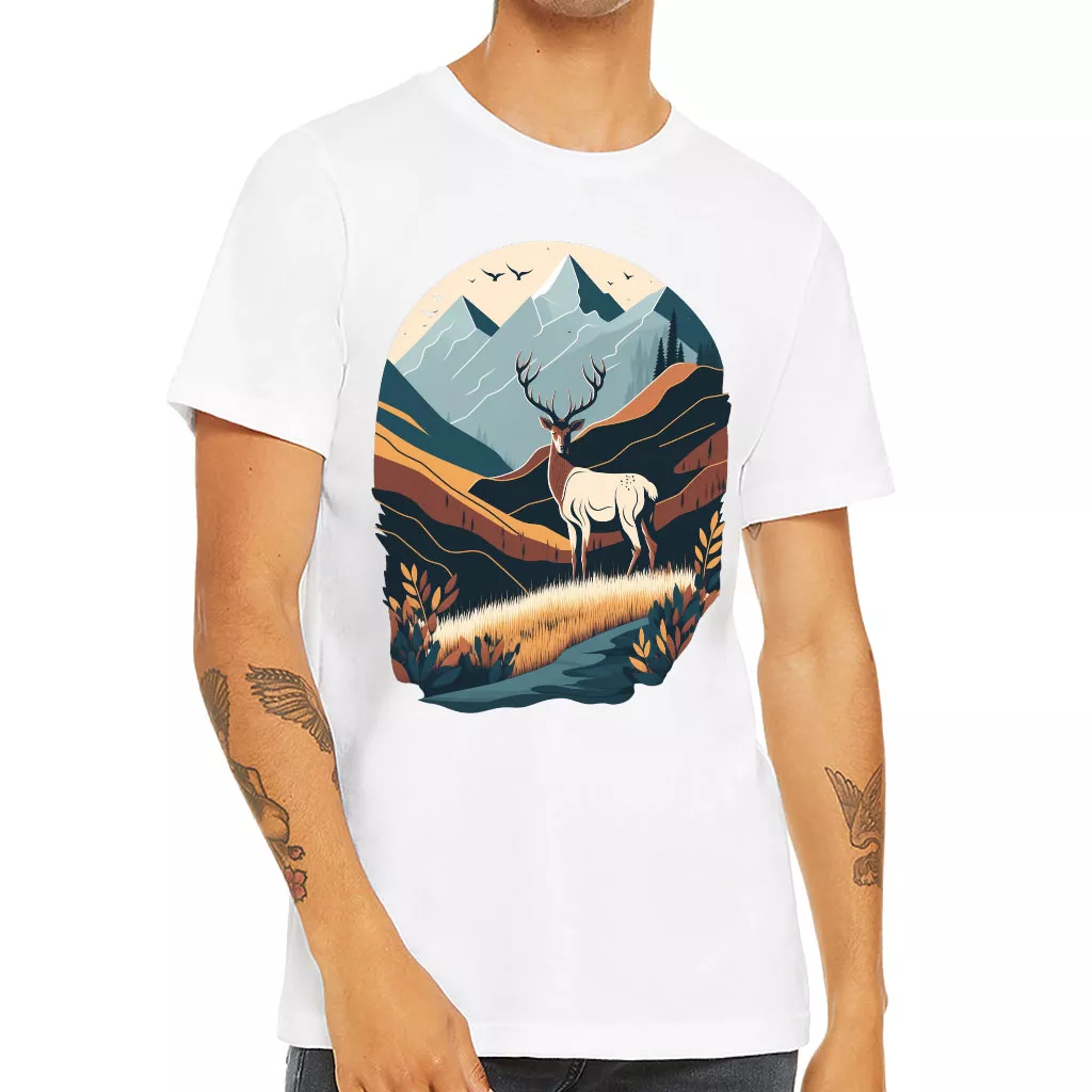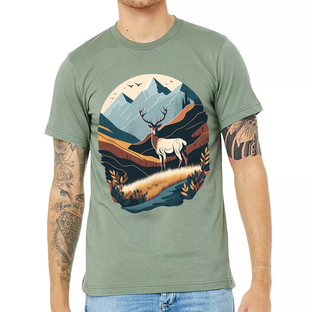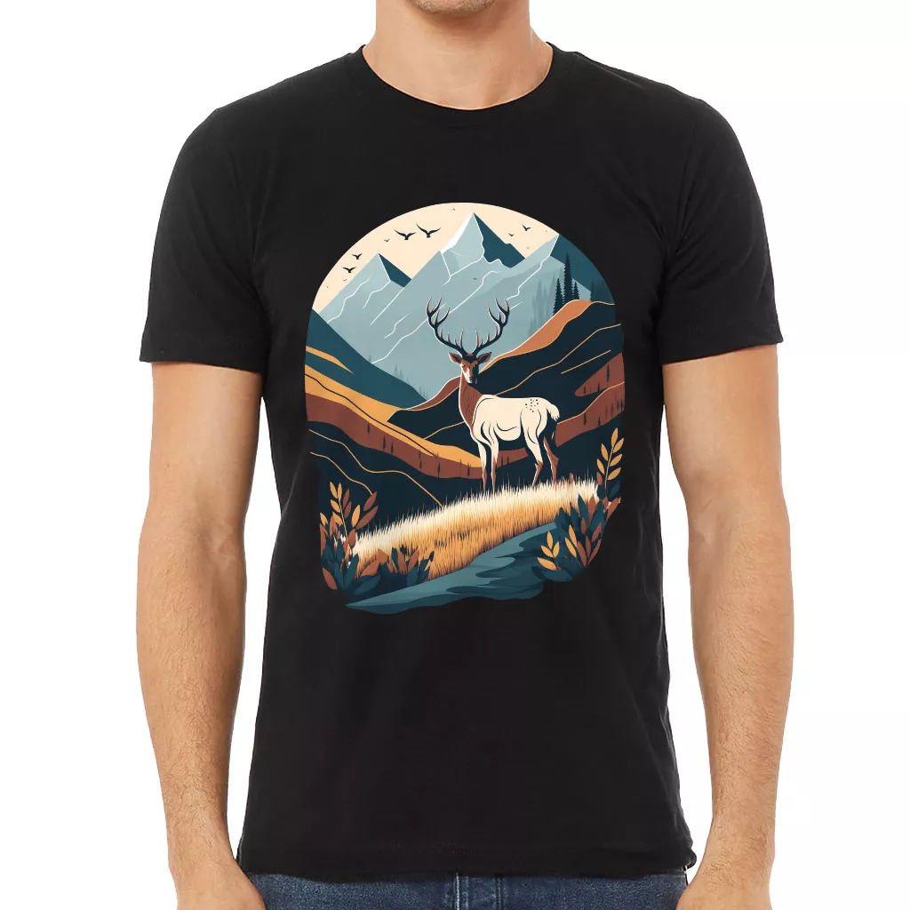 Nature Print Short Sleeve T-Shirt – Deer T-Shirt – Landscape Short Sleeve Tee