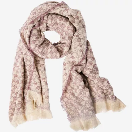 Add instant, effortless style to any look by accessorizing with this checkered weave scarf. Features golden lurex thread that adds the right amount of shimmer to your outfit.