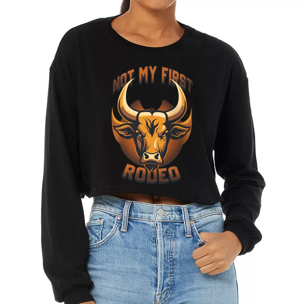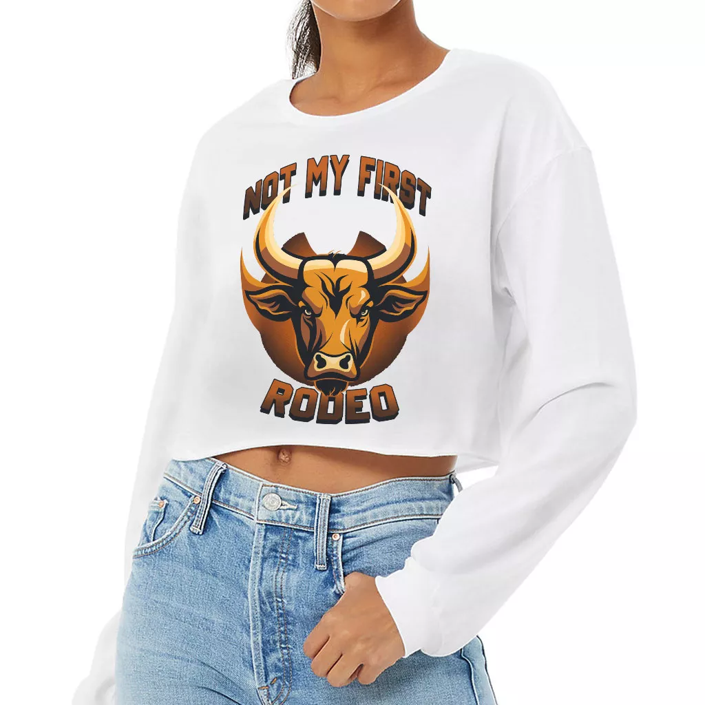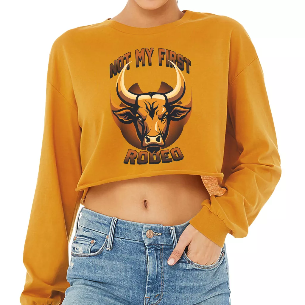 Not My First Rodeo Cropped Long Sleeve T-Shirt – Bull Design Women’s T-Shirt – Cool Graphic Long Sleeve Tee