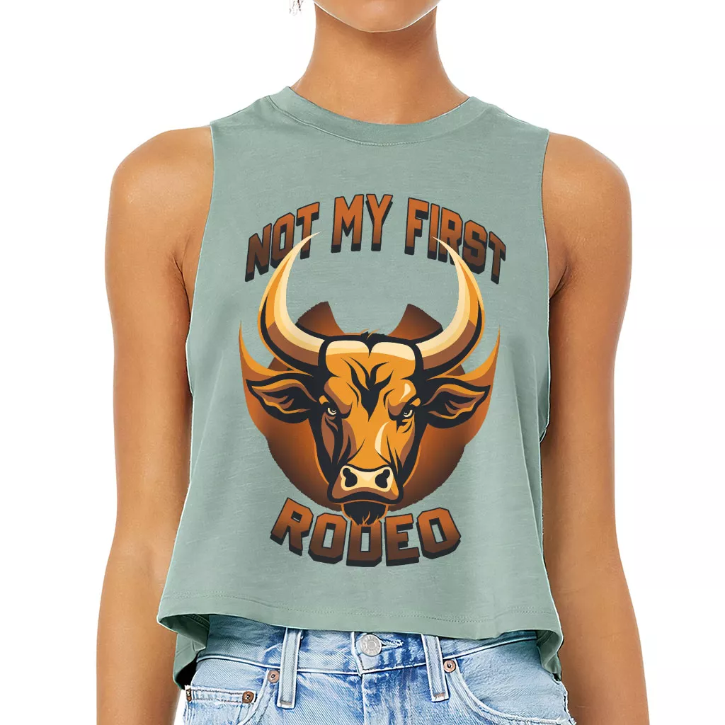 Not My First Rodeo Racerback Cropped Tank – Bull Design Women’s Tank – Cool Graphic Tank Top
