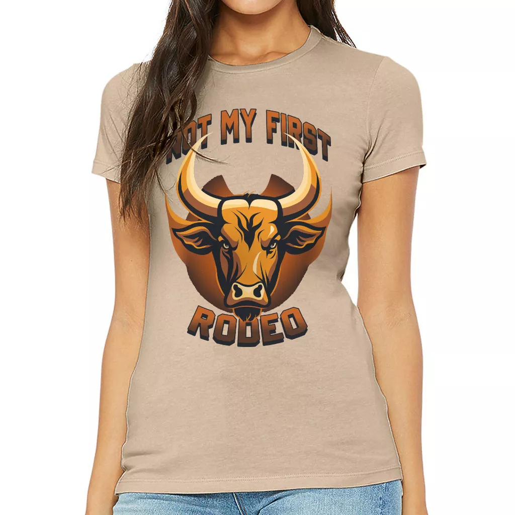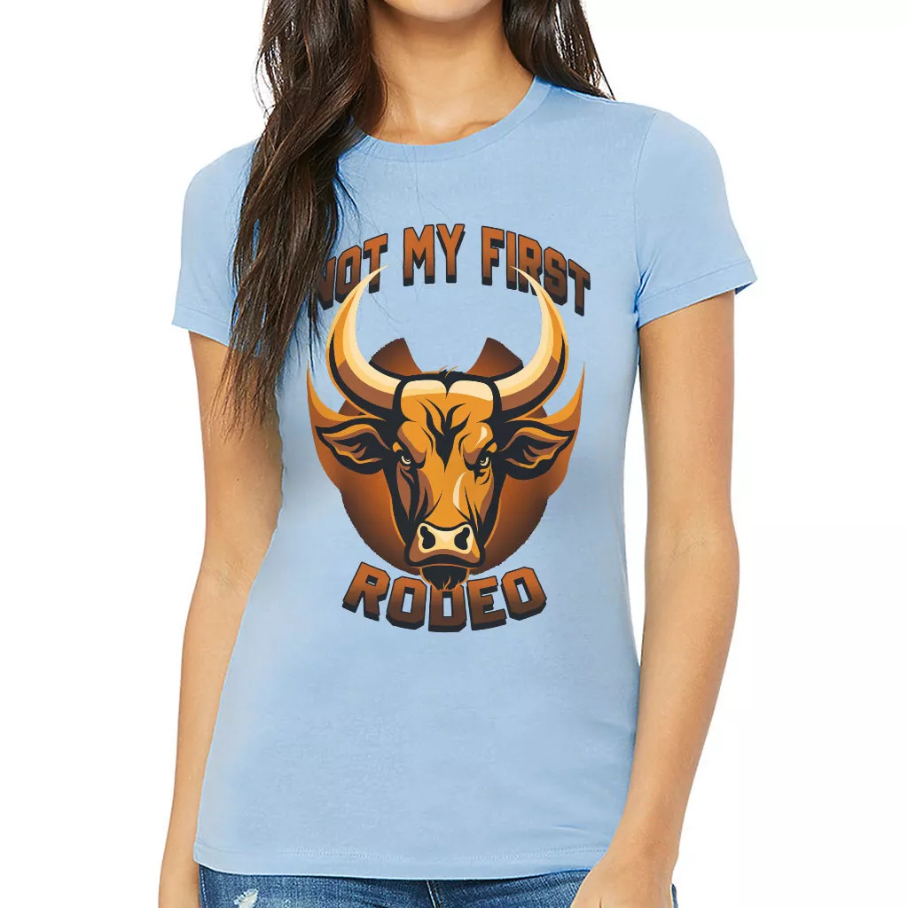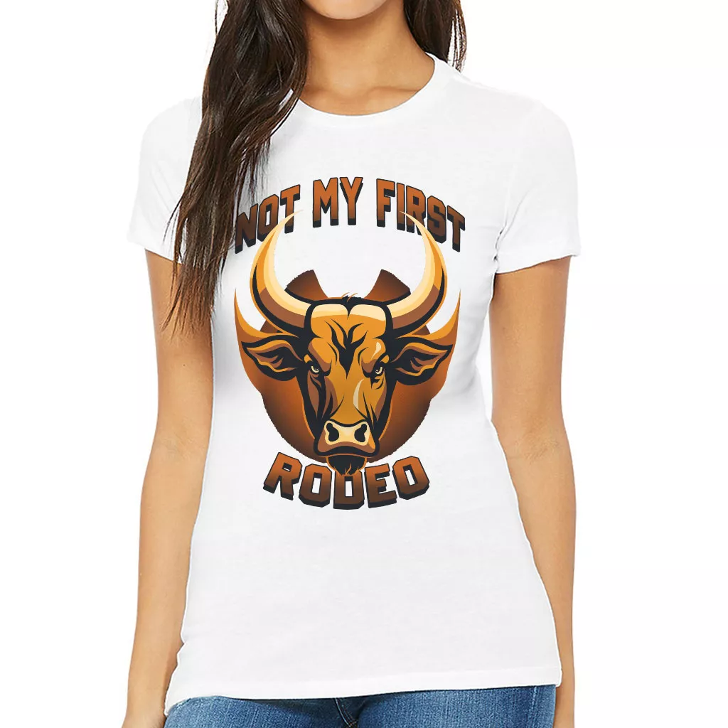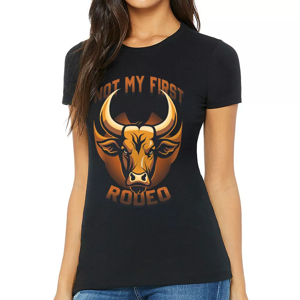 Not My First Rodeo Slim Fit T-Shirt – Bull Design Women’s T-Shirt – Cool Graphic Slim Fit Tee